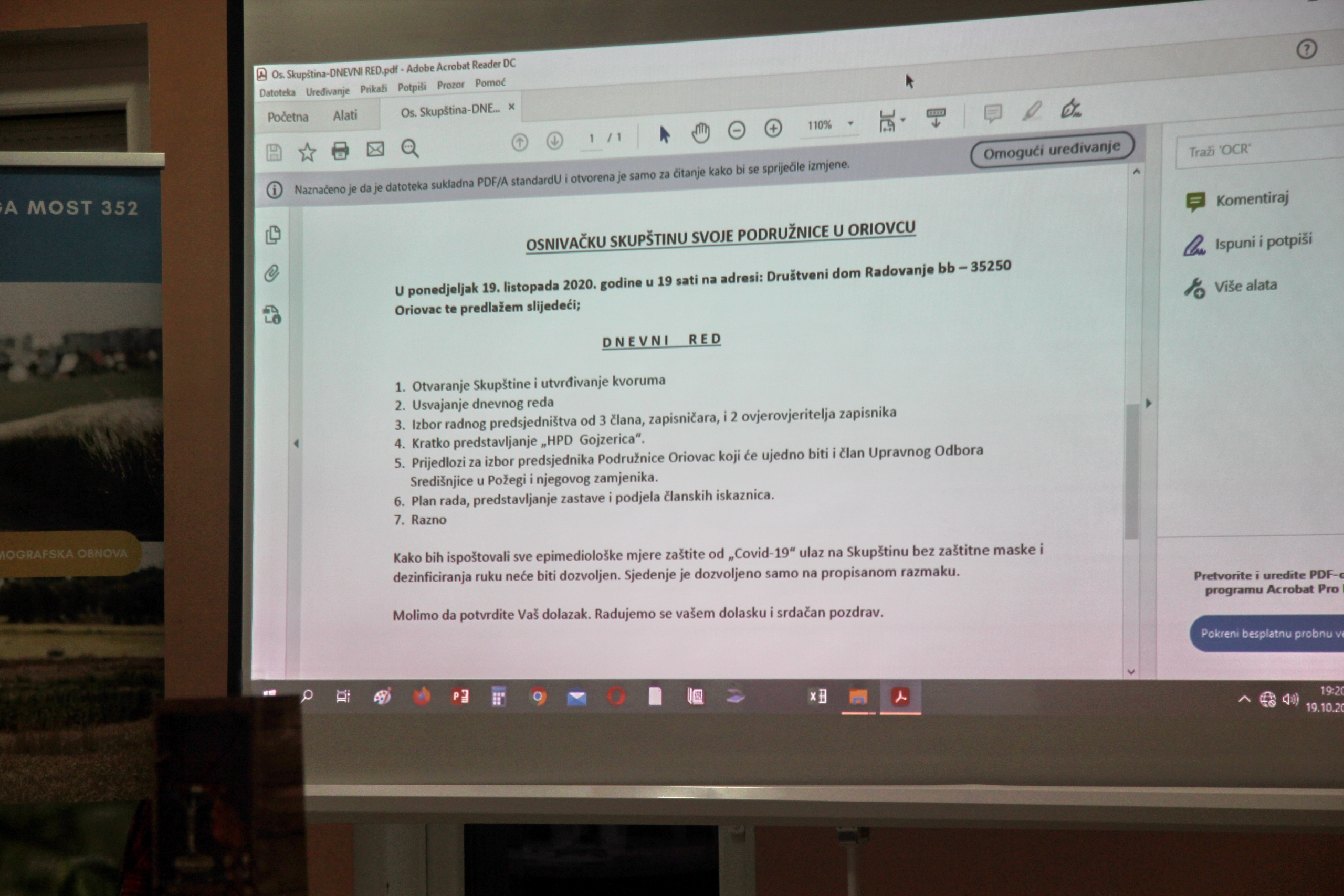 Tog sumornog maglovitog ponedjeljka u ranim večernjim satima, u vrijeme najžešće pandemije održana je osnivačka skupština kojoj je nazočilo 17 osnivača: Karlo Tomljenović, Višeslav Turković, Antun Pavetić – načelnik, Zoran Ivezić, Jurica Sudar, Franjo Memedović – pokojni, Zdravko Ećimović Lojza – pokojni, Frano Barišić, Danijel Ciganović, Željko Seifert, Vlado Crnković, Alen Bionda, Matija Pandurić, Kruno Knežević, Ivan Knežević, Miroslav Medunić i Franjo Margetić. Na skupštini su izabrani Zoran Ivezić za voditelja Podružnice te Jurica Sudar za njegovog zamjenika, a nakon toga svi nazočni popunili su pristupnice ušavši u veliku obitelj HPD Gojzerica koja već tada brojala preko 100 članova.