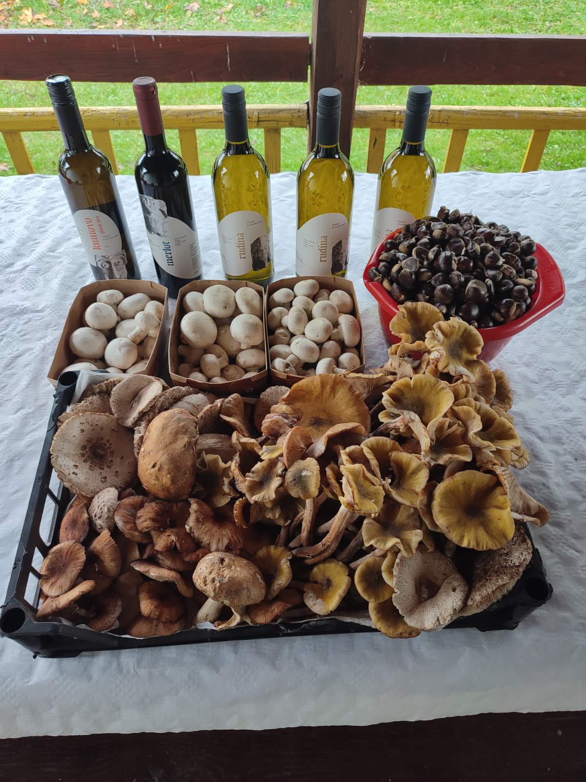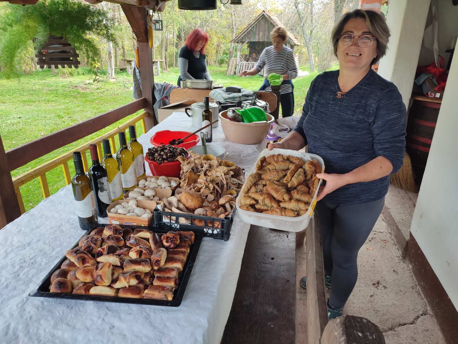 Nakon uspješnog branja, vrijedne planinarke su pripremile ukusan objed koji je uključivao omlet s gljivama, pečene kestene, juhu od gljiva te kiflice i kolače koji su napravljeni od jesenskih plodova. Uz to, poslužena su Akademska vina Zlatne doline koja su nastala u nastavnoj bazi Fakulteta koja su se fenomenalno sljubljivala s posluženom hranom.