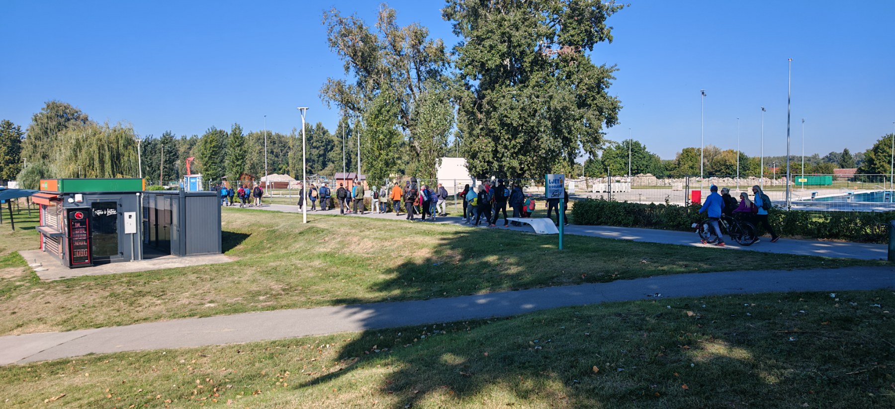 Staza duga 15 km slijedila je rijeku Dravu s pogledoma na Retfalu, Pamapas i prekrasnu Opus arenu. Cijelim putem domaćini su organizirali puntove za okrijepu umornih hodača, koje su počastili poznatim domaćim osječkim brendovima kao što su: Jadro, Moto i dr. Nakon dužeg hoda planinari su stigli na cilj, odmorište uz Dravu kod Višnjevca, gdje su im Lege pripremile topli grah i piće za okrijepu.