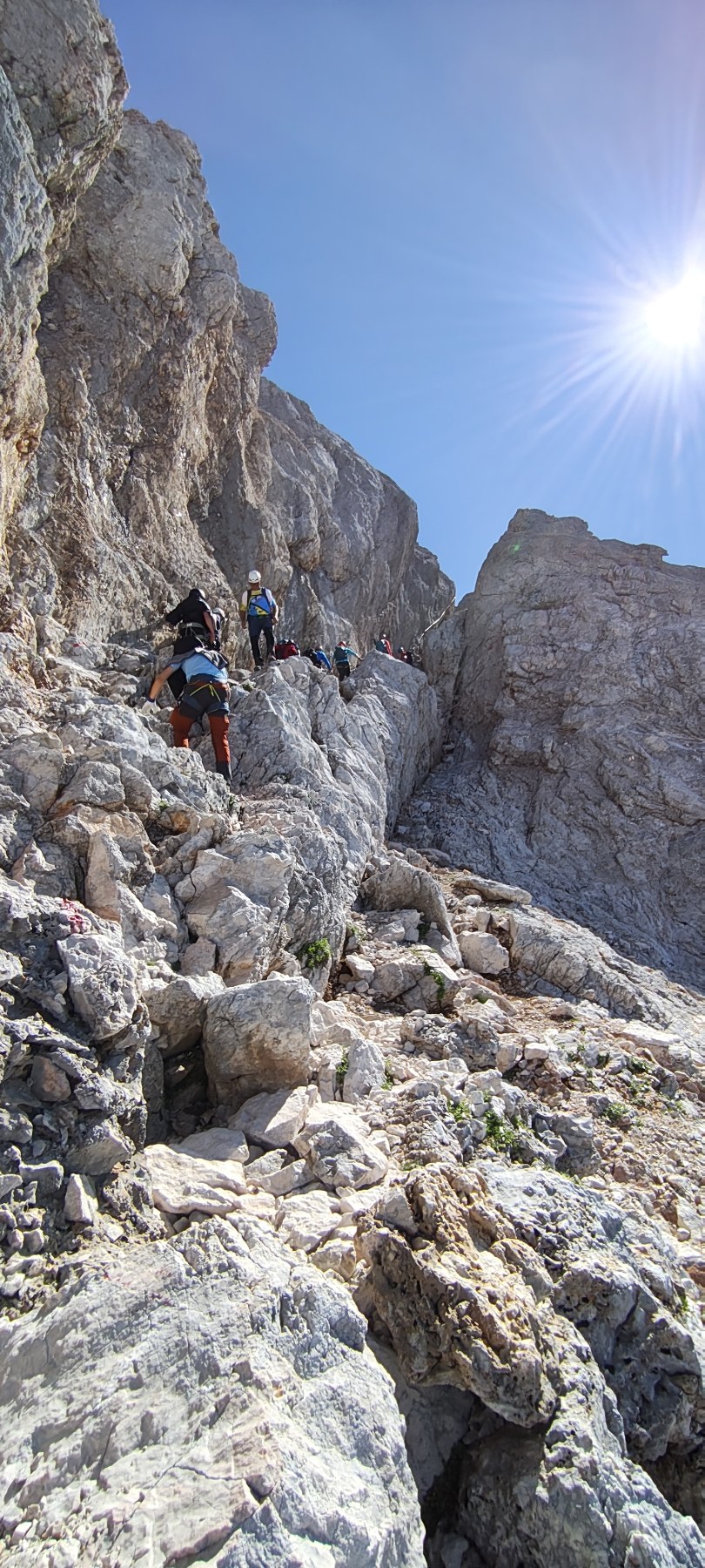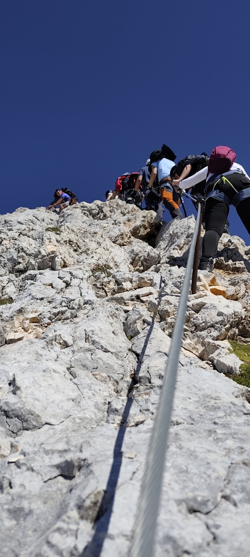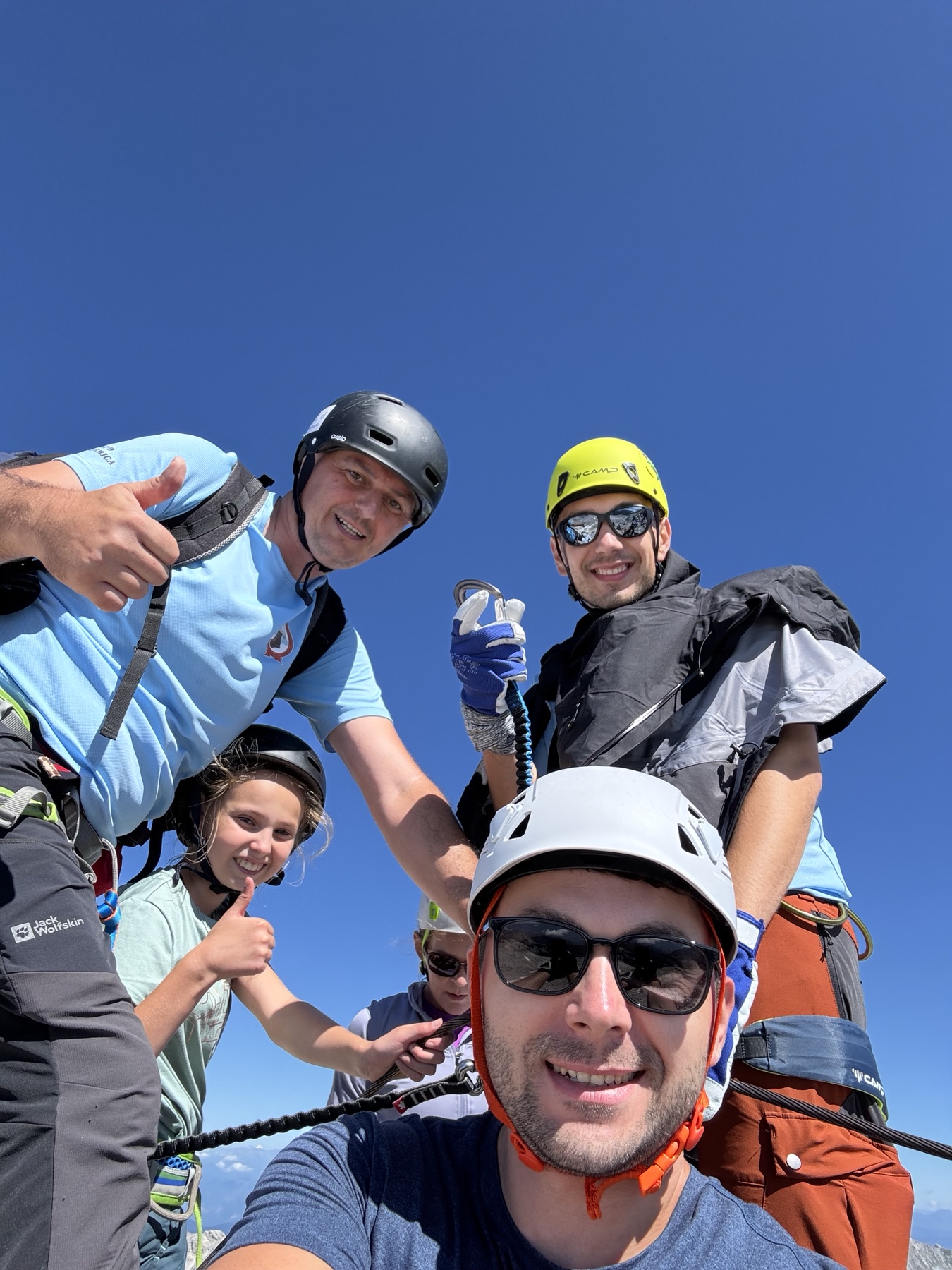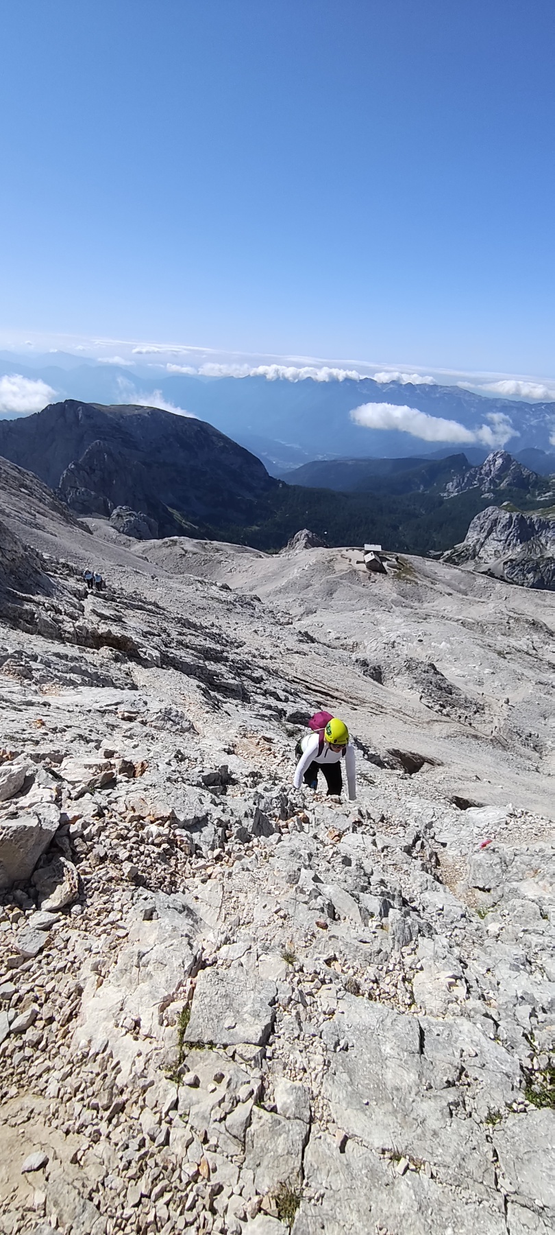 Uspon na vrh uključivao je i via ferratu, koja je za neke bila novo iskustvo. No svi su se brzo snašli i uz odličnu podršku vodiča nastavili prema vrhu. Nakon oko dva sata tehničkog uspona, njih osmero je stajalo na vrhu Triglava, uživajući u prekrasnom, sunčanom danu.