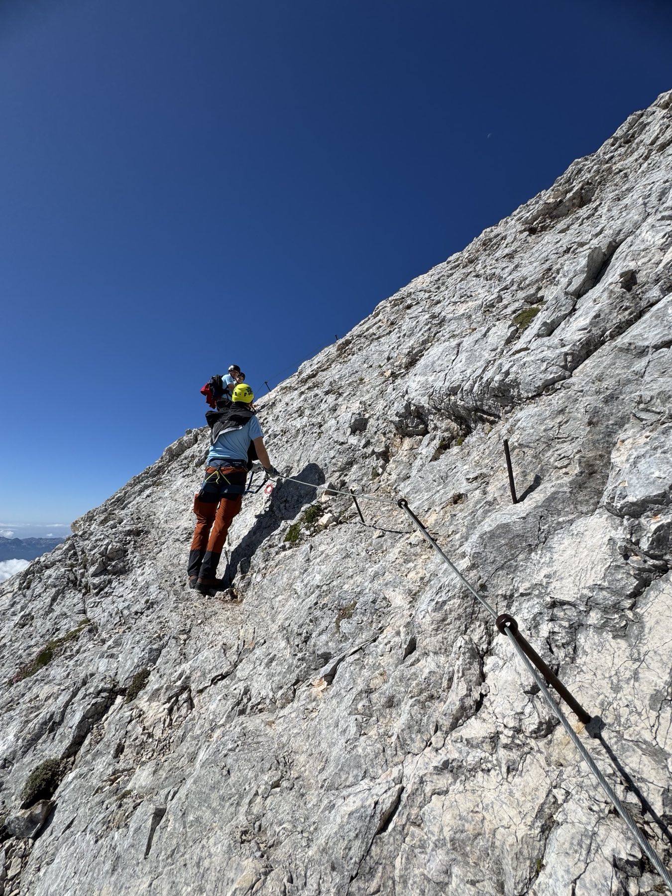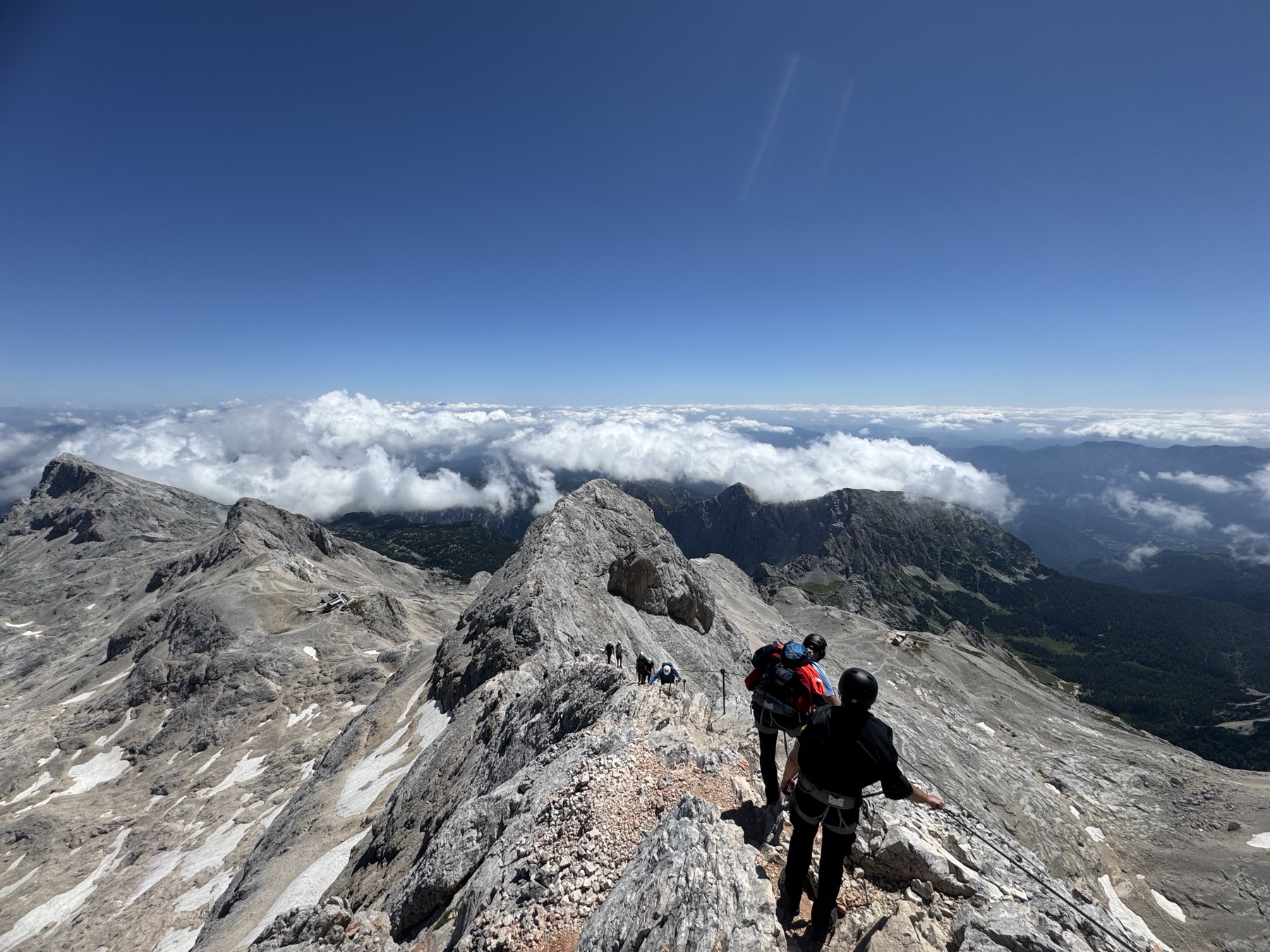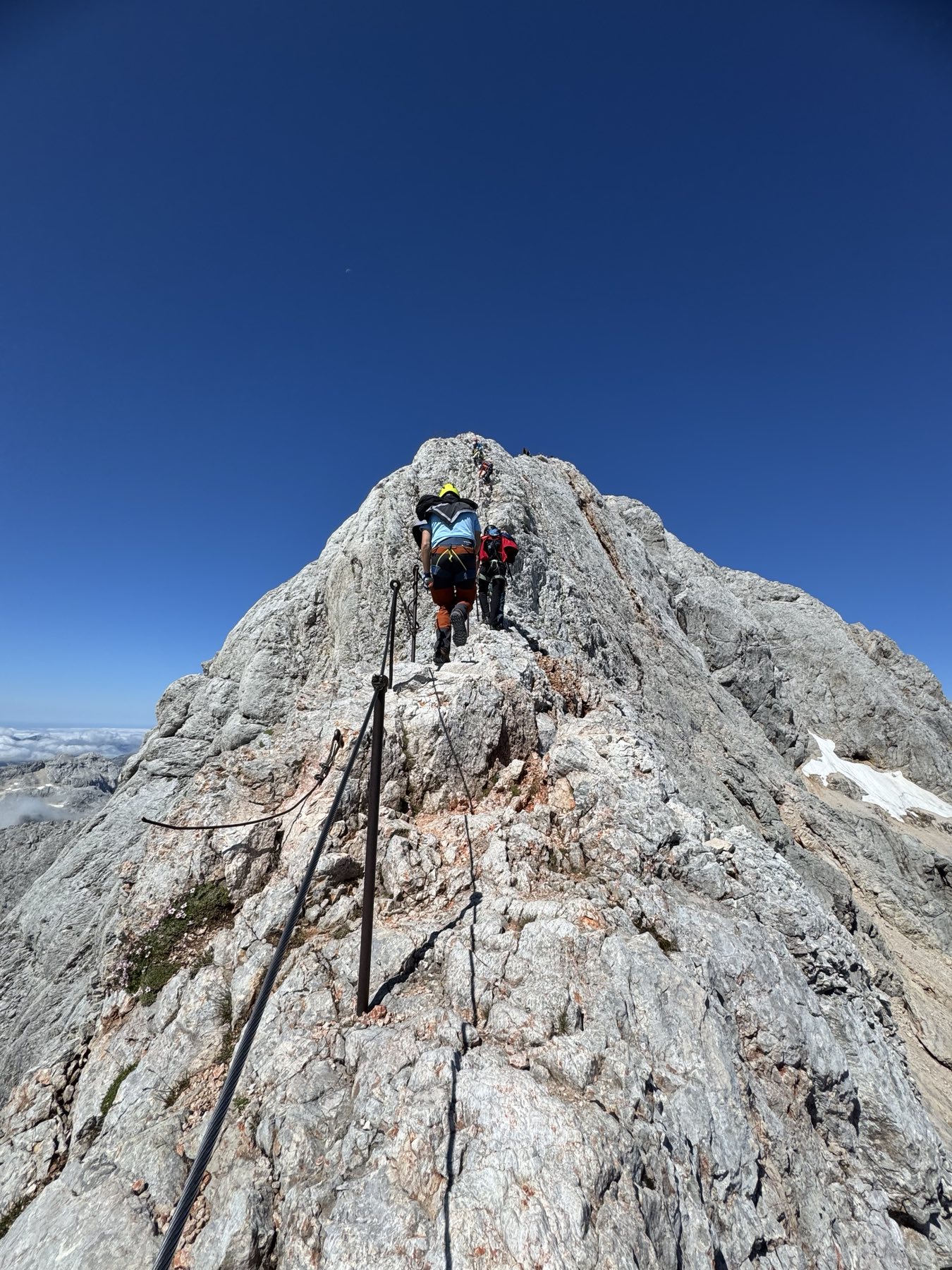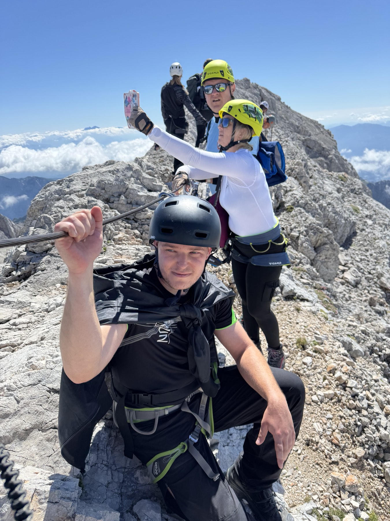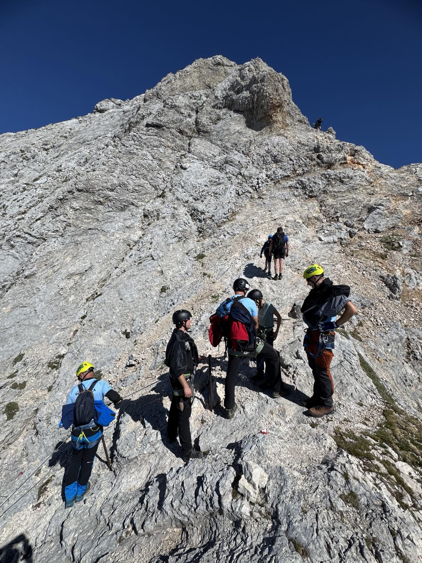 Uspon na vrh uključivao je i via ferratu, koja je za neke bila novo iskustvo. No svi su se brzo snašli i uz odličnu podršku vodiča nastavili prema vrhu. Nakon oko dva sata tehničkog uspona, njih osmero je stajalo na vrhu Triglava, uživajući u prekrasnom, sunčanom danu.