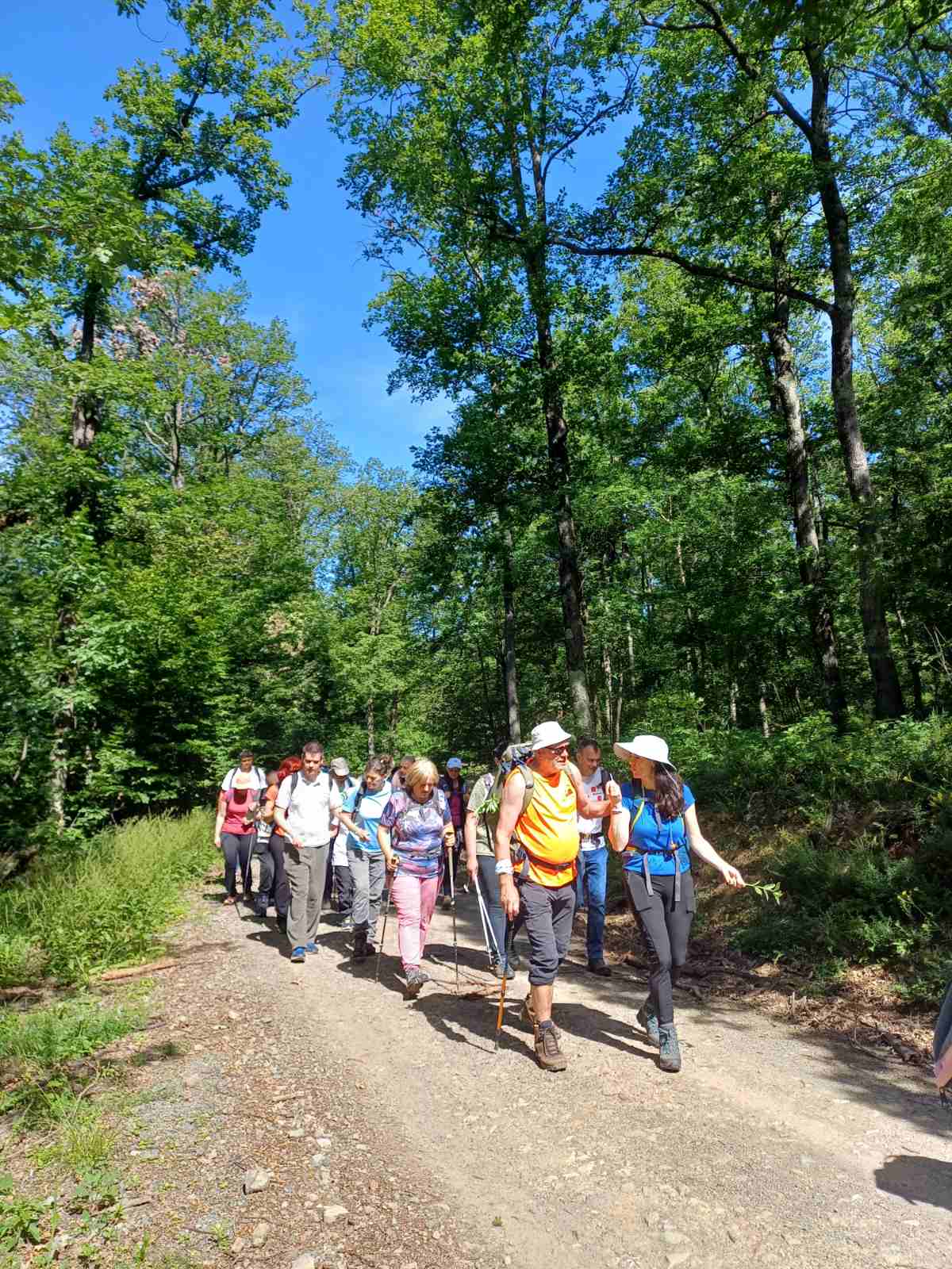 Izlet je protekao veselo, uz puno razgovora i pošalica. Hodali su zajedno po hrbatu Požeške gore od sela Vasine Laze kroz prekrasnu hrastovu šumu do utvrde Viškovački grad te dalje do brda Starac. Uslijedio je predah i zajednički objed iznad pleterničkih vinograda. Ova staza je pažljivo odabrana jer omogućuje sigurno kretanje, uzbrdica je blaga a cesta široka i u dobrom stanju.