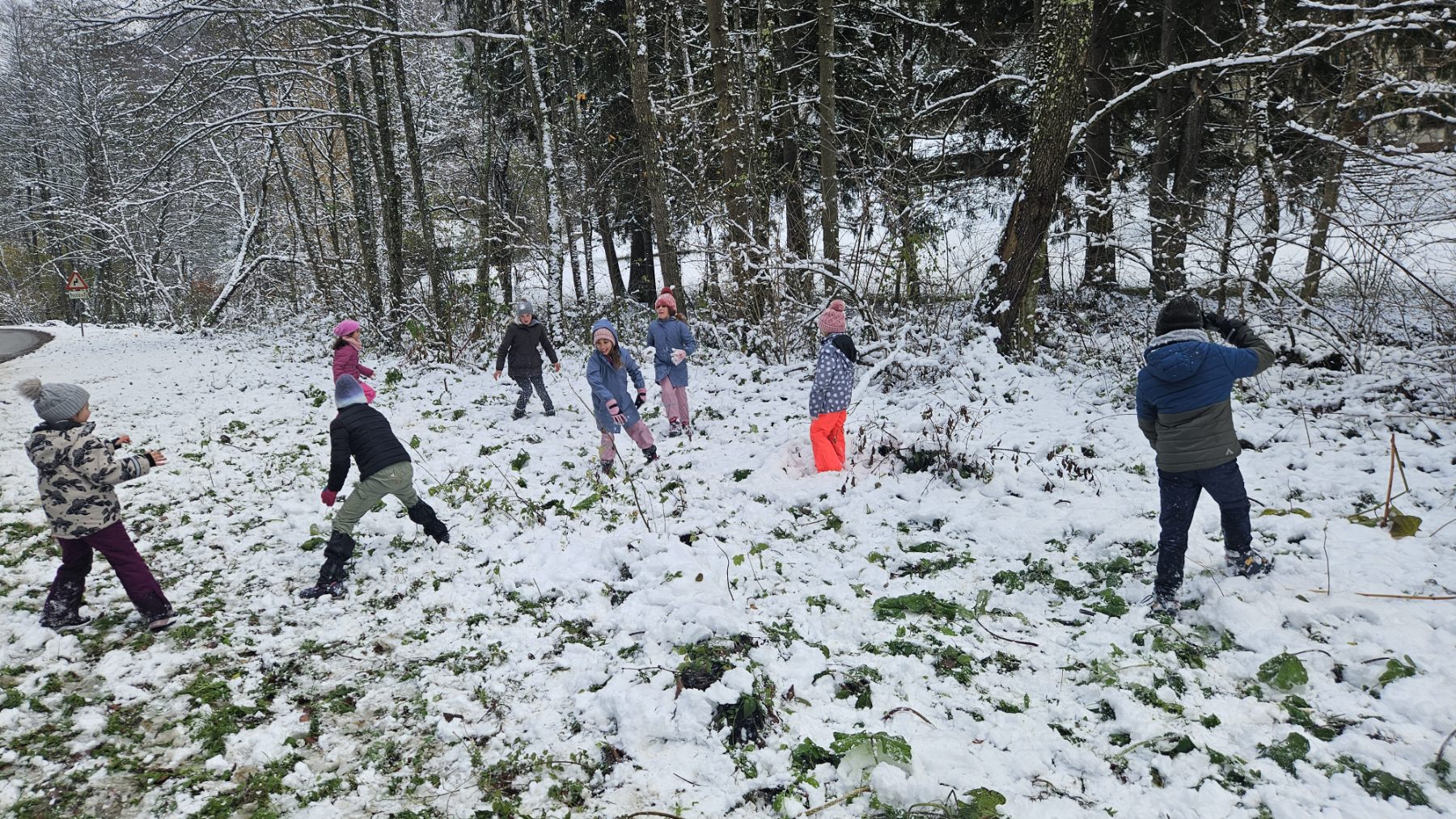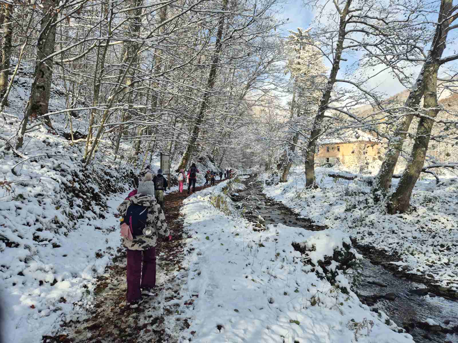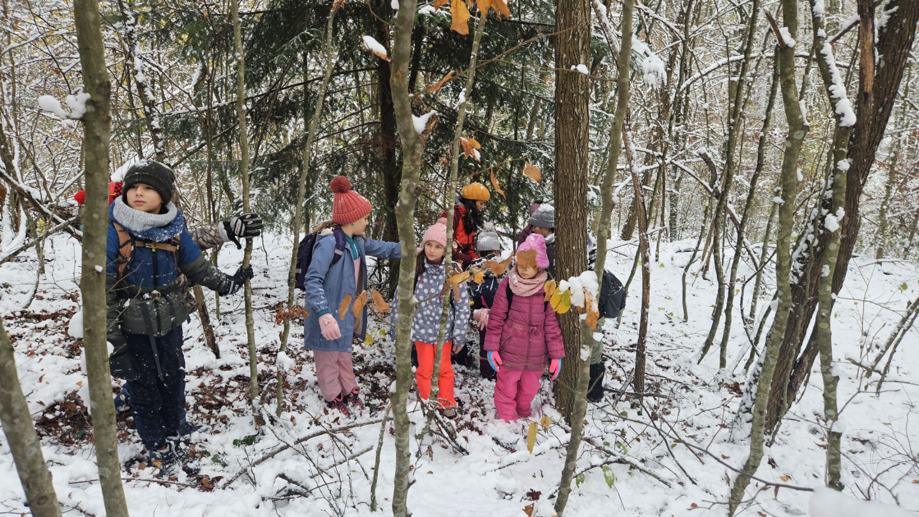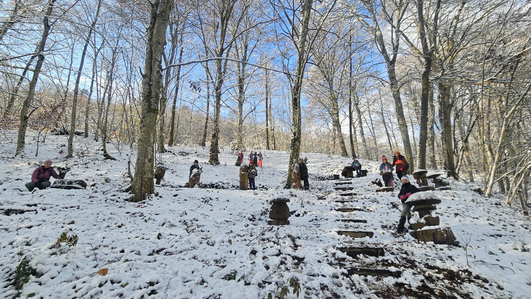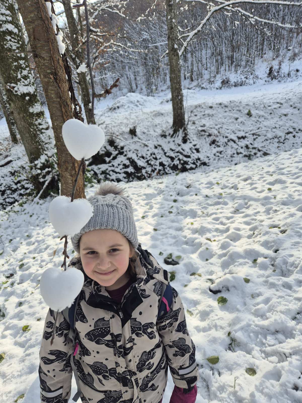 Potom se krenulo na stazu Malog izvora i divljeg kestena, koja je prekrivena snijegom postala posebno zanimljiva. Djeca su se cijelim putem grudala, skidala ledenice s grana, proučavala tragove u mekom snijegu i veselo napredovala kroz šumu. Otkrili smo im i čarobni svijet geocachinga, pa se cijela skupina pretvorila u male istraživače koji nestrpljivo tragaju za skrivenim „blagom“.