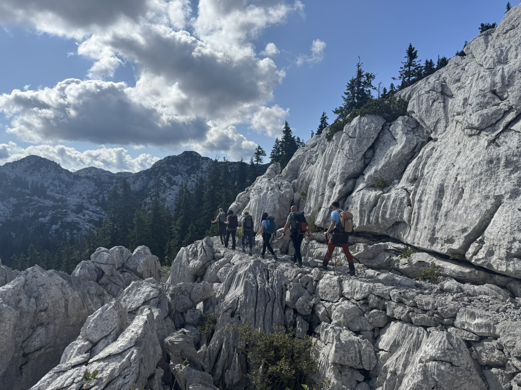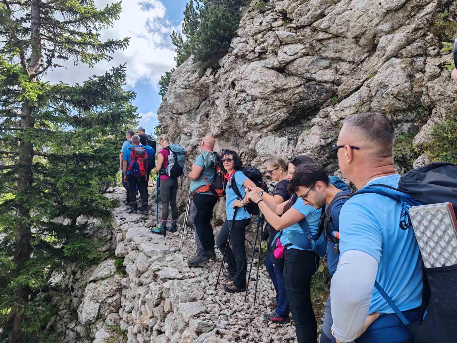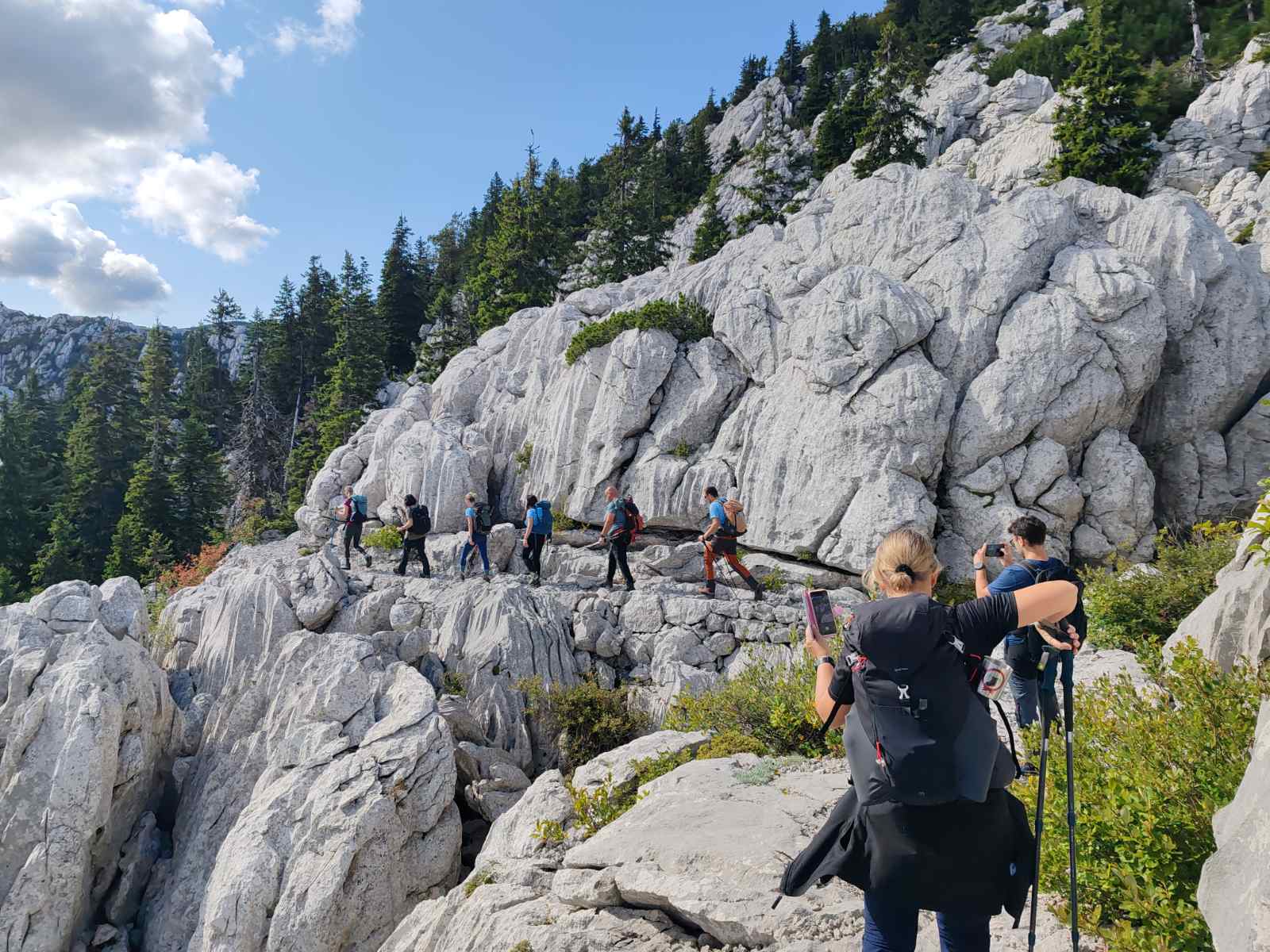 Napokon, planinari stižu na svoje odredište, točnije polazište – parkiralište ispod planinarskog doma na Zavižanu. Spremaju svoje ruksake, zatežu gojzerice i rasklapaju štapove. Pada i zajednička fotografija prije polaska na stazu koja ih očekuje. Prekrasnom Premužićevom stazom planinari su oduševljeni. Kamenje i čiste bijelo sive stijene koje je voda oblikovala u čudo izgledaju mitski i nestvarno. Epiteti najljepše staze u Lijepoj našoj ovdje su u svom punom sjaju. Fotografije prirode i planinara su takve da i sam NP Sjeverni Velebit koristi iste na svojim društvenim mrežama s potpisom pojedinih foto meštara ove družine.
