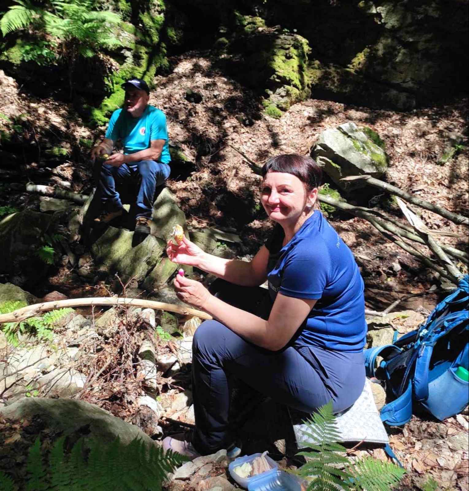 Ovaj su uspon s lakoćom savladali! U podnožju kote 668 skreću, te se spuštaju na stjenjak Sokolina. Na njegovoj slikovitoj terasi, ispijajući jutarnju kavu, uživaju u prostranom pogledu na najviši vrh Papuka. Snimaju još pokoju fotografiju za uspomenu te odlaze nizbrdo do šumske ceste koja ih vodi do Mačkovca, skrivenog, malog slapa okruženog stijenama i gustom, hladnom papučkom šumom. Ovdje, uz nježni žubor vode koja se pretače po oblom kamenju, objeduju slastan planinarski ručak.
