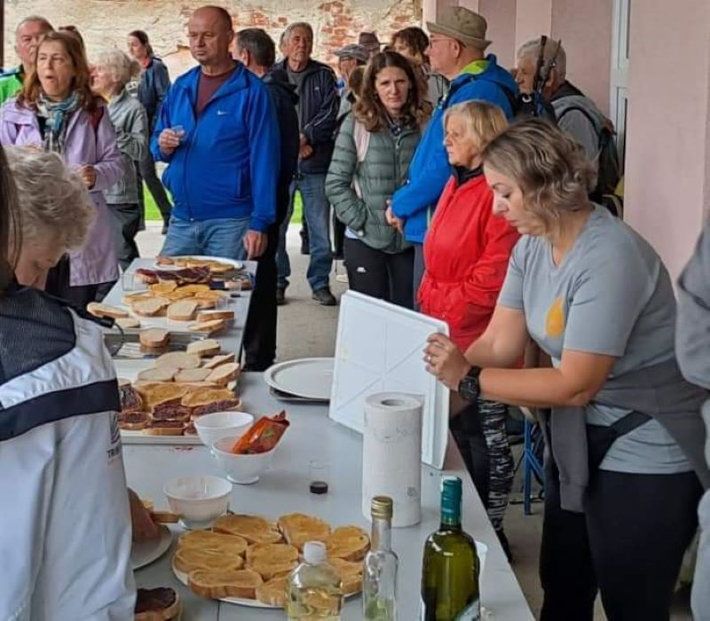 Nakon okupljanja ispred mjesne Škole za sve sudionike pohoda bio je organiziran planinarski doručak i piće dobrodošlice. Nakon pozdravnih riječi domaćina krenulo se put najljepših predjela vinograda i šuma koja se nalaze na Krndiji.