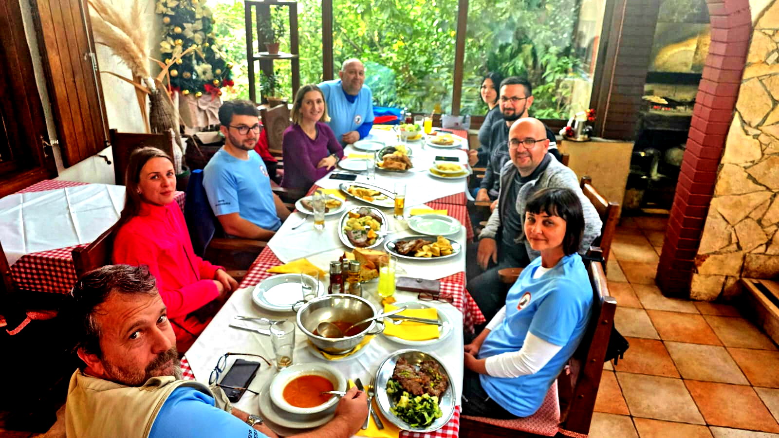 Nedjeljno jutro donijelo je promjenu planova. Loše vrijeme natjeralo ih je na povratak, ali avantura tu nije stala. Kiša u Mostaru uz jutarnju kavu, zatim nastavak prema Konjicu, gdje su – mudro i pravovremeno – kupili lance za kombi jer, kiša je ubrzo prešla u gust snijeg, a planinski putovi pretvorili su se u pravu zimsku bajku. Prizori su bili fenomenalni, ali trebalo je podosta umijeća hrabrom vozaču da ih izvede iz snježne oluje. Probijanje kroz snježne dionice do Brankovića u blizini Žepča i toplina restorana Dubrovnik, uz tanjur domaćeg gulaša, bili su savršen završetak ove male ekspedicije.