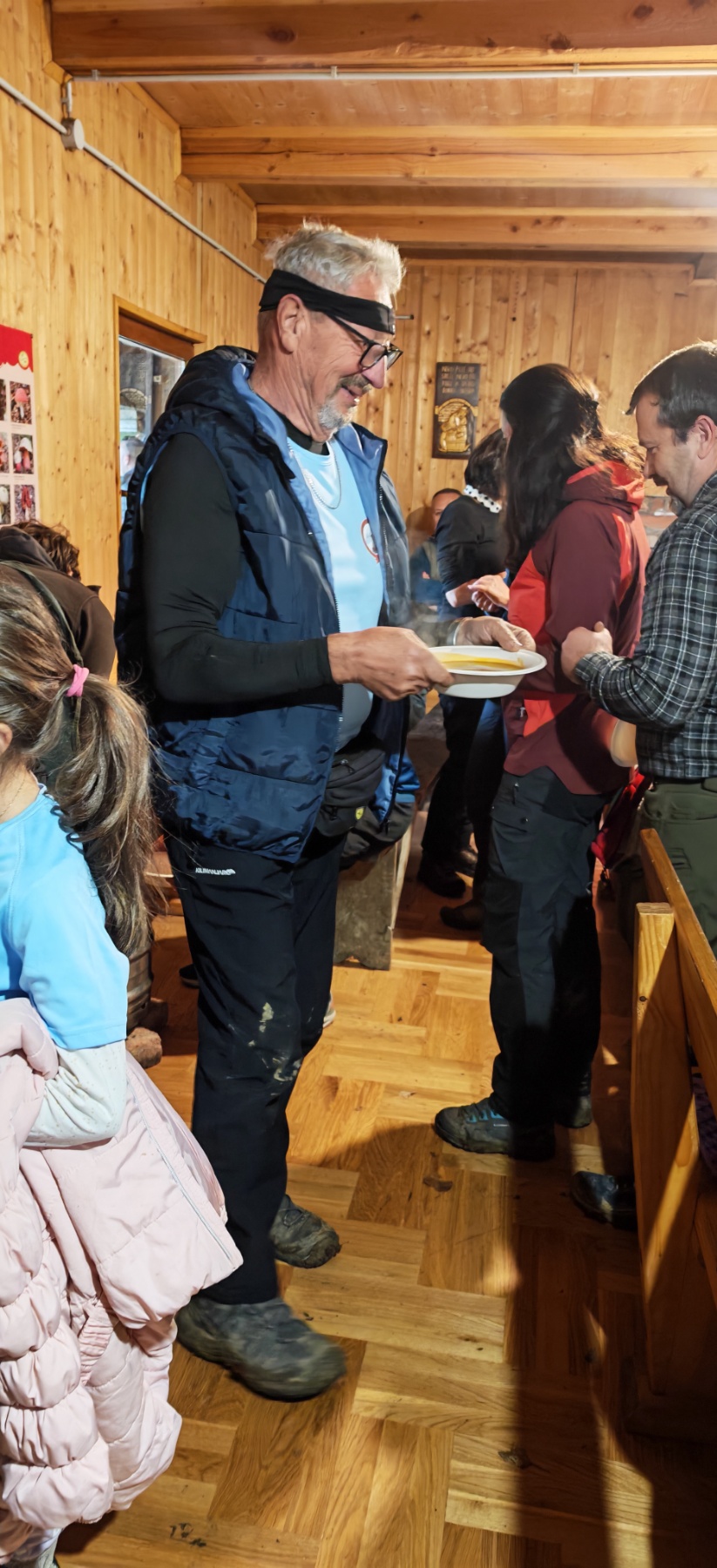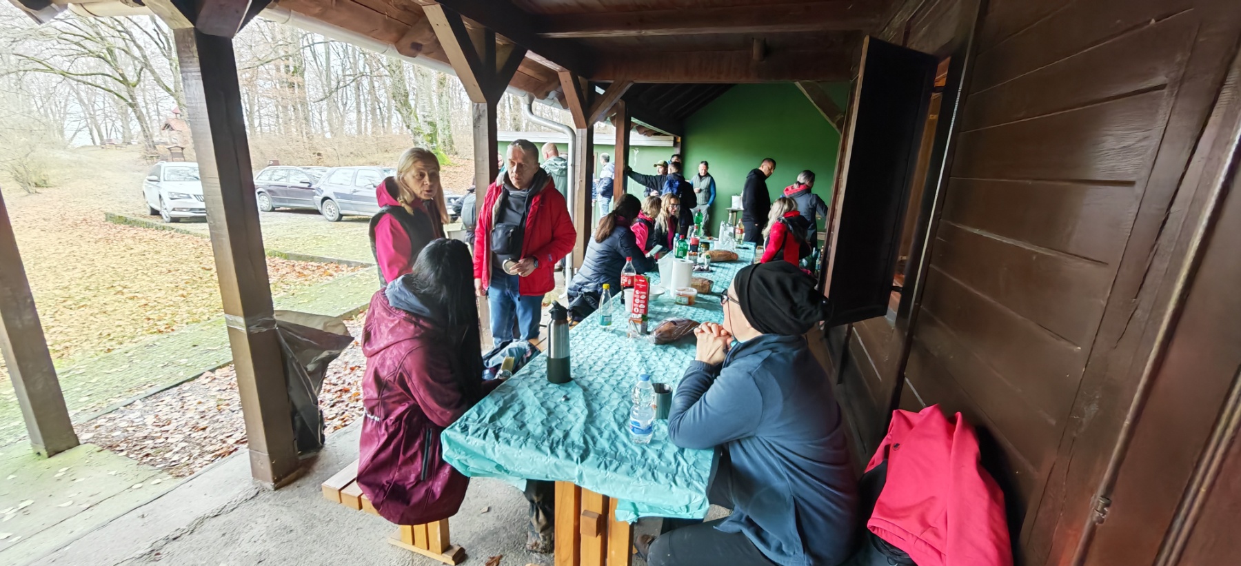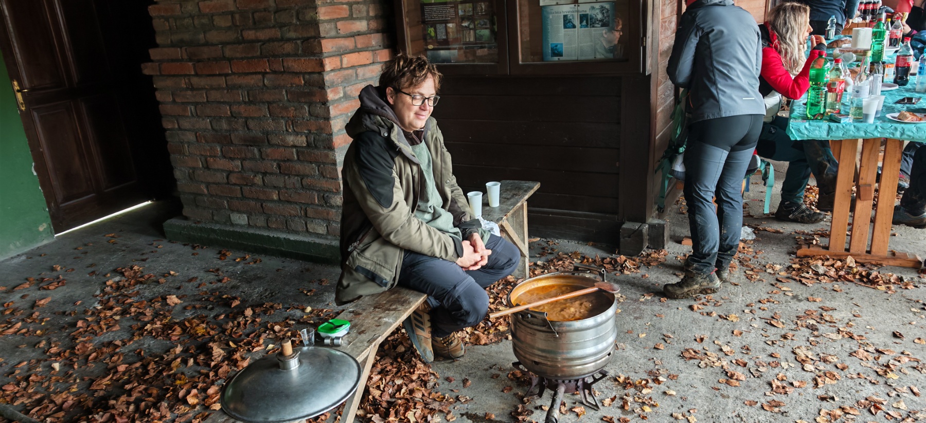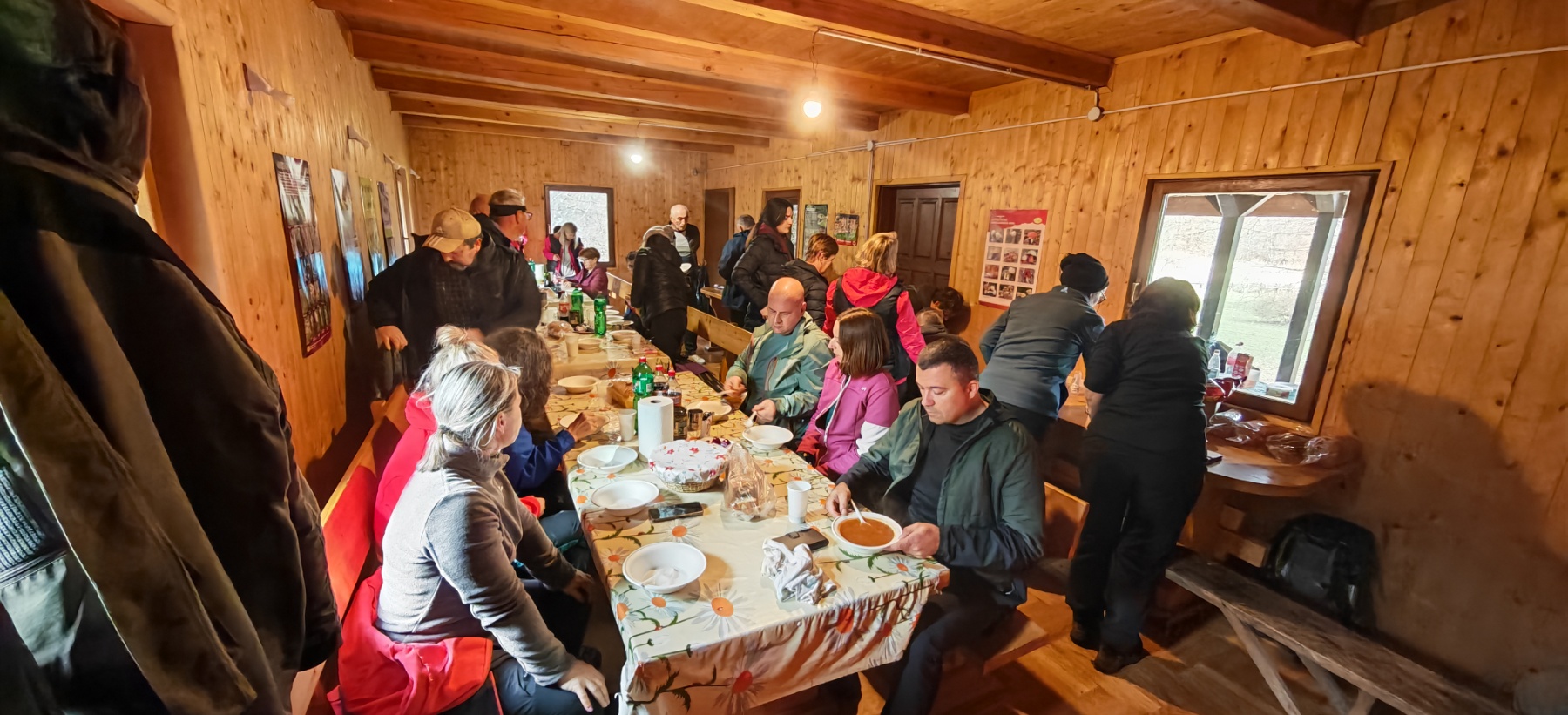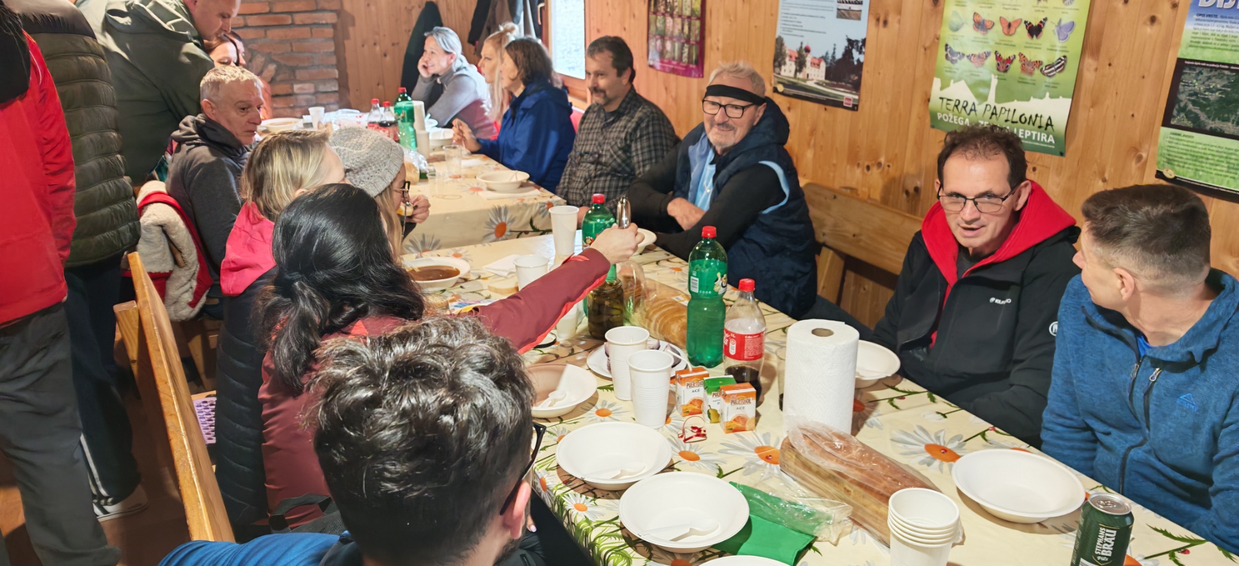 Dok su planinari uživali u prekrasnoj šetnji, iskusni kuhar Marko Barukčić pripremao je lovački gulaš, uz asistenciju Višeslava Turkovića i Ivana Zeljka. Po povratku sa staze planinari su se okupili u obližnjoj lovačkoj kući, kako bi se ugrijali i okrijepili nakon duge šetnje. U lovačkoj kući dočekao ih je topao lovački gulaš, piće, kolači i torta. Nakon što su posjedali i poslužili se hranom, obratio im se predsjednik društva – jedan od osnivača, kako bi ih pozdravio i čestitao im osmi rođendan.