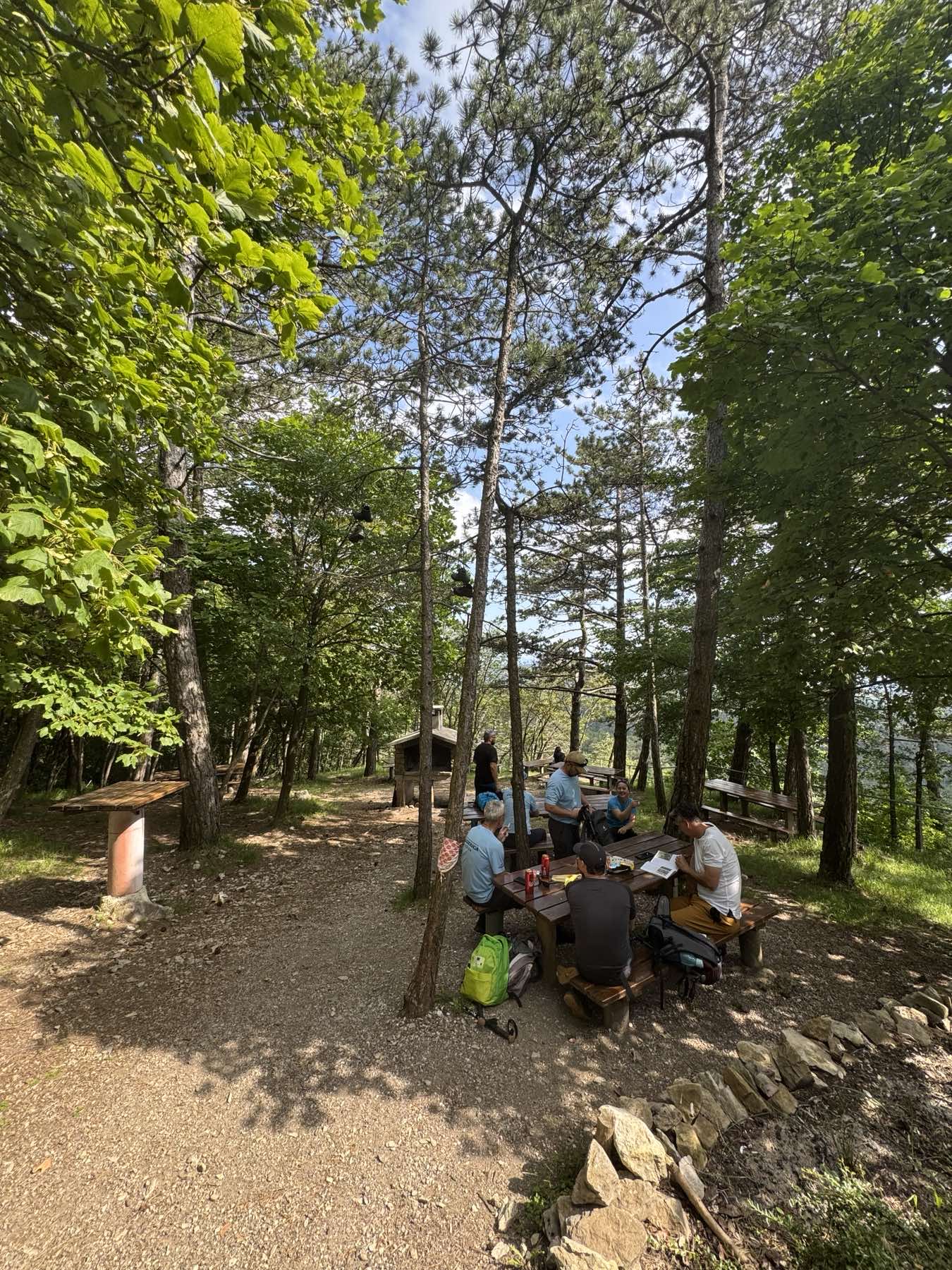 Nakon ubiranja prvog žiga, spuštamo se u Buzet po ključ planinarske kuće Žbevnica, a usput pronalazimo i Konobu Most gdje uživamo u domaćoj istarskoj kuhinji – domaćim fužima, pljukancima, njokima i ostalim delicijama. Siti i pobjedonosni (zbog osvojenog prvog vrha), upućujemo se u turističku šetnju Buzetom i berbu duda na koji smo slučajno nabasali na putu do vidikovca i koji je taman u punom plodu. Tako “nadudani” krećemo prema selu Brest, kako bi postavili tabor i pripremili se za novi uspon. Po dolasku u planinarsku kuću – koja je stvarno lijepa, ima struju, sanitarni čvor, vodu, (pitku, doduše vrlo hladnu) – ostavljamo svoje stvari i krećemo osvojiti još koji vrh, jer nam je prolazno vrijeme više nego dobro. Čak bi i voditelj naše vodičke sekcije Boro bio ponosan. Pola sata skakutanja po šumi te livadi i osvajamo Žbevnicu, istaknuto brdo na zapadnom dijelu Ćićarije i ujedno najzapadniji hrvatski tisućnjak. Najviša točka na vršnoj livadi označena je kamenom kupom na kojoj smo odradili i konkretniji foto session. Zbog odličnog prolaznog vremena odlučimo osvojiti još jedan vrh, pa smo u nedoumici kuda i kako. Naš vozač je lobirao za osvajanje Slovenije, mi smo se odlučili za Špičasti vrh, ipak je bliže. Putem osvajamo i Muzar i složimo se da će ovaj izlet biti dobra berba žigova. Po povratku se odvajamo u tri grupe i svatko tko je htio mogao se okušati u vodičkoj ulozi. Bilo mi se teško odlučiti s kojom ću grupom krenuti pa sam pratila cure iz zadnje klupe kombija. Da ne propustimo ostale dvije staze zovemo se grupno videopozivom i uživamo u ljepotama staza na kojima nismo bili prisutni. Po dolasku u dom obavljamo toaletu, a pošto nas je 18 trebalo je slušati zapomaganje iz kupaonice dok se ljudi tuširaju u hladnoj vodi. Svi su preživjeli! Neko vrijeme družimo se vani ispred planinarske kuće i uživamo u pogledu, hranimo mačku (vozač teoretizira da je miješana s divljom mačkom), jedemo i pijuckamo. Prije počinka naš vozač nam je pročitao dnevne vijesti i ispričao više viceva. Oko 22 h krećemo igrati igru “tko prvi pisne”. Sretniji od nas su jednostavno ukomirani zaspali, drugi su “rezali drva”, hihotali se, a neki nisu mogli spavati zbog besplatne dostave na Notinu pa je pala i pokoja narudžba.