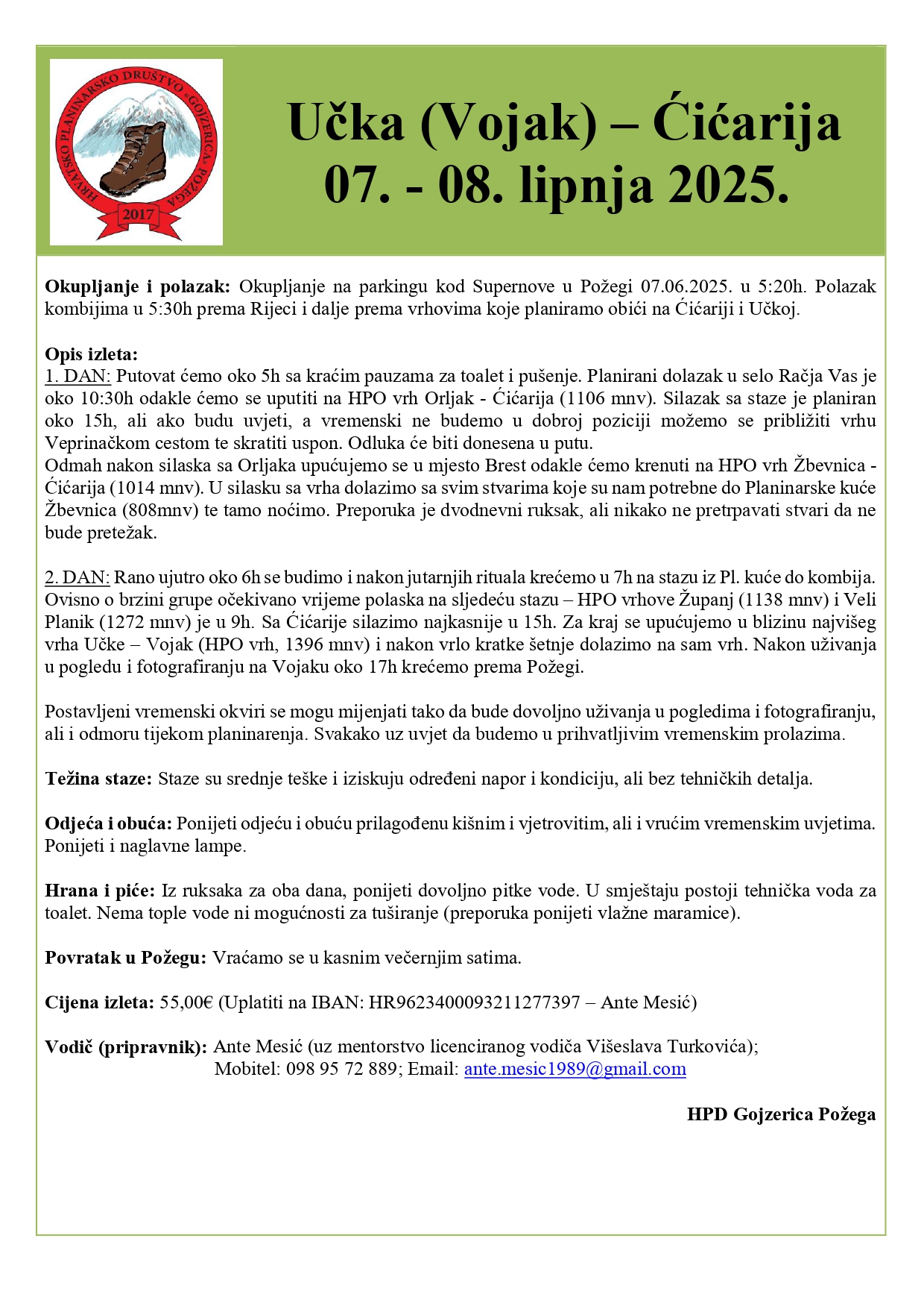 BUZET / Vikend 7. i 8. lipnja 2025. planinarke i planinari HPD Gojzerica Požega proveli su uživajući u ljepotama Učke i Ćićarije. Vodič ovog izleta bio je Ante Mesić, inače vodič pripravnik, uz mentorstvo i budno oko iskusnih vodiča Martine Keller i Višeslava Turkovića.