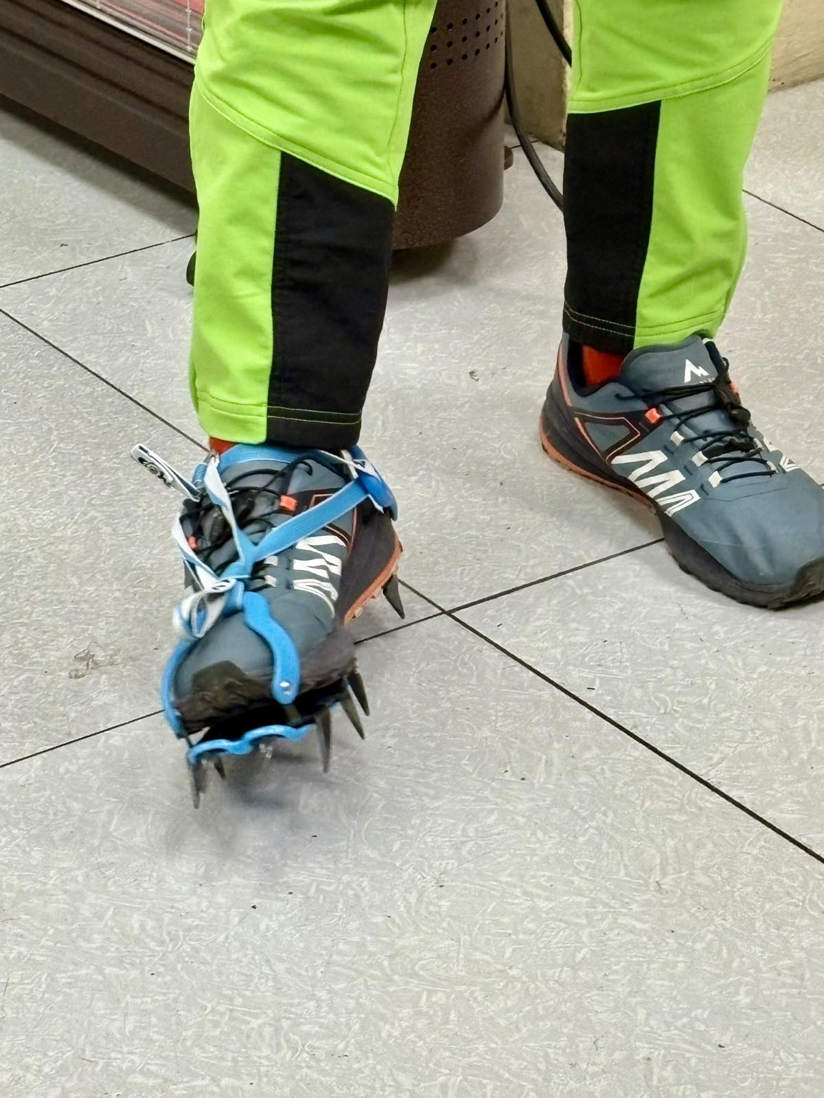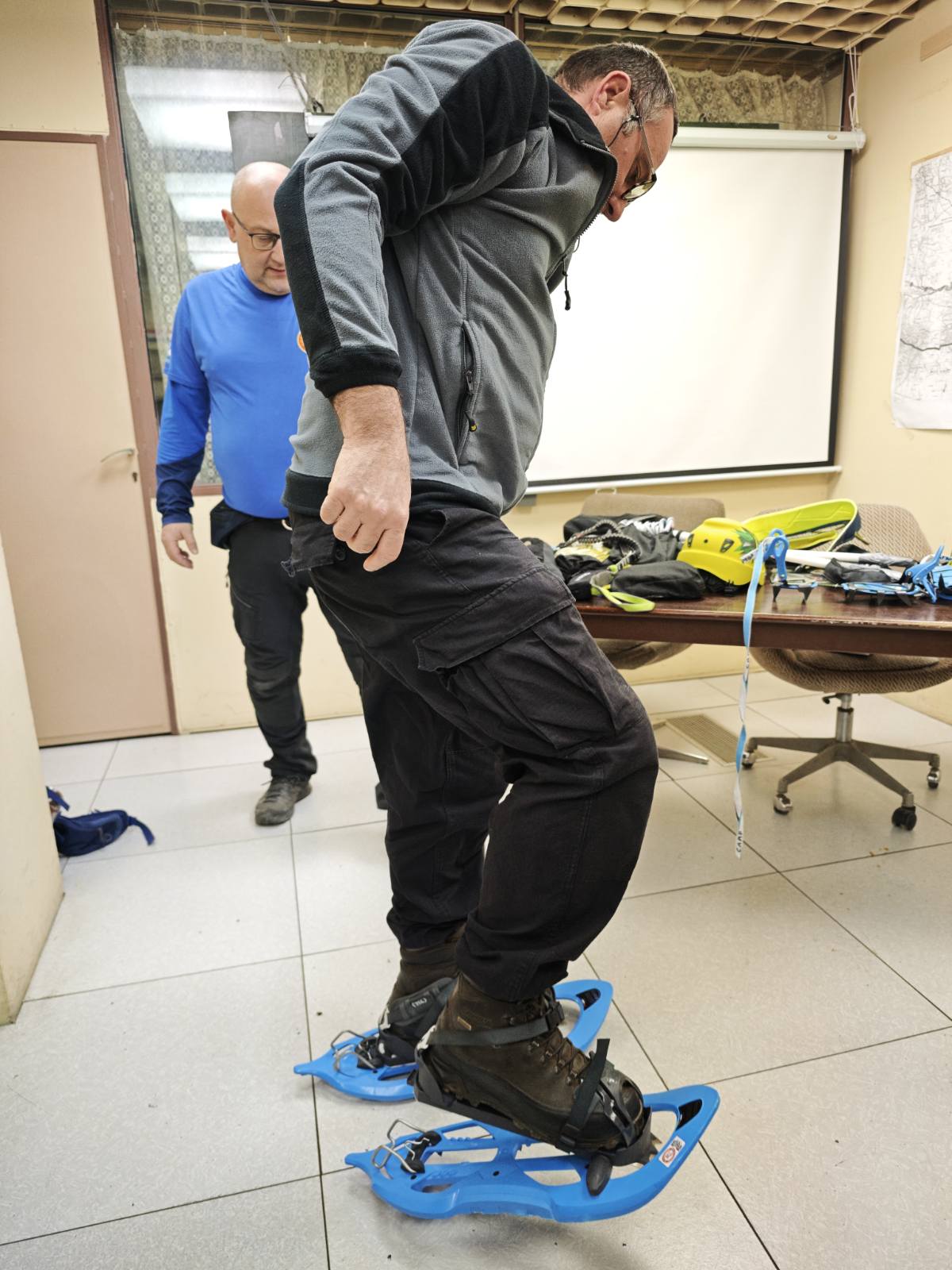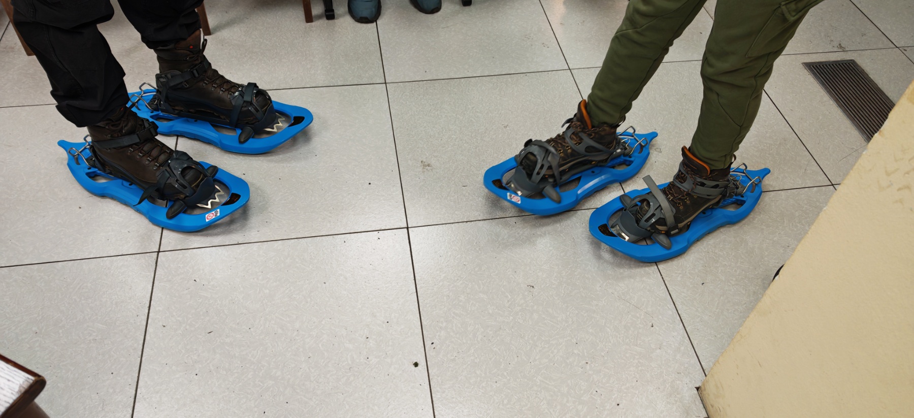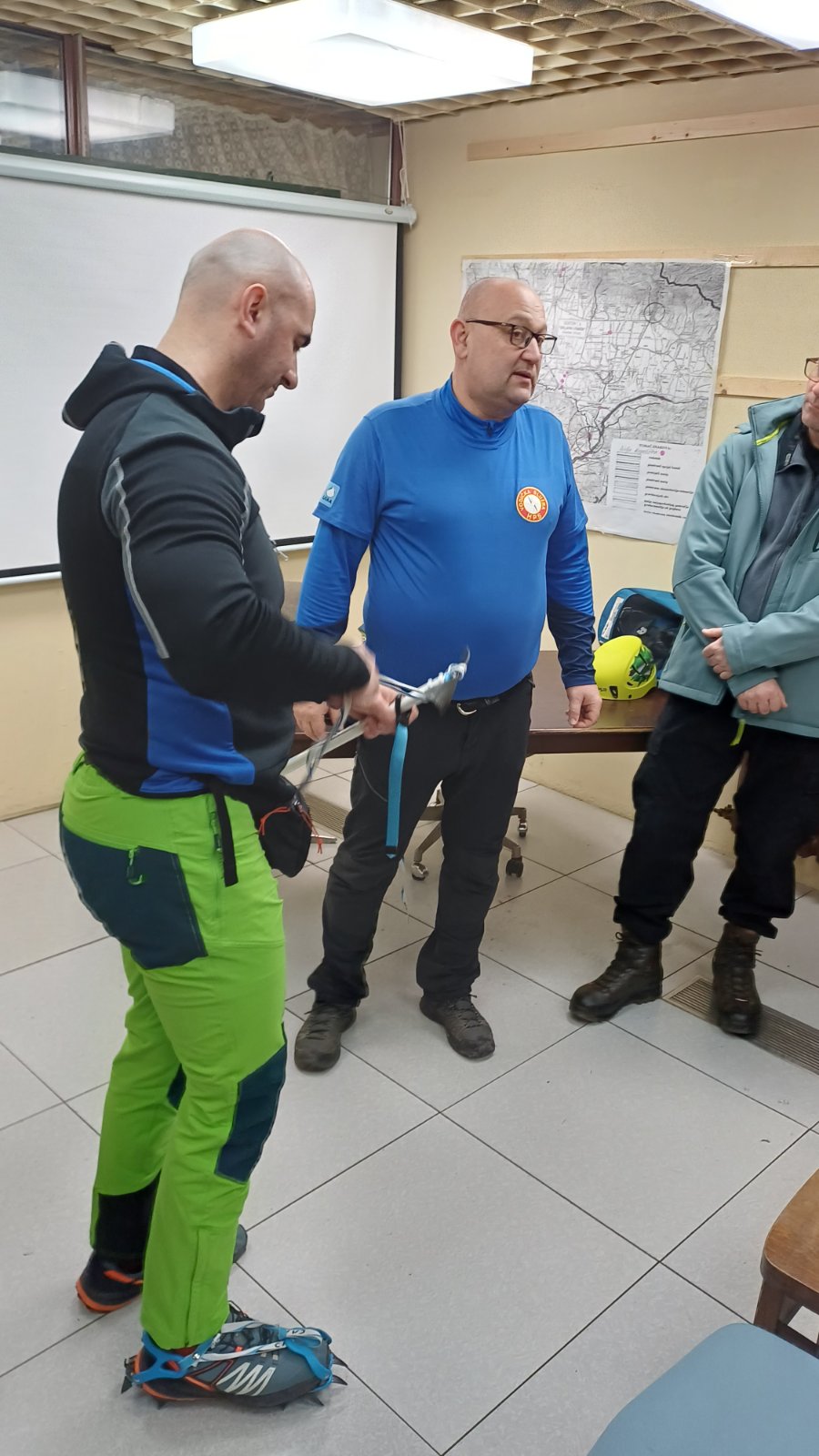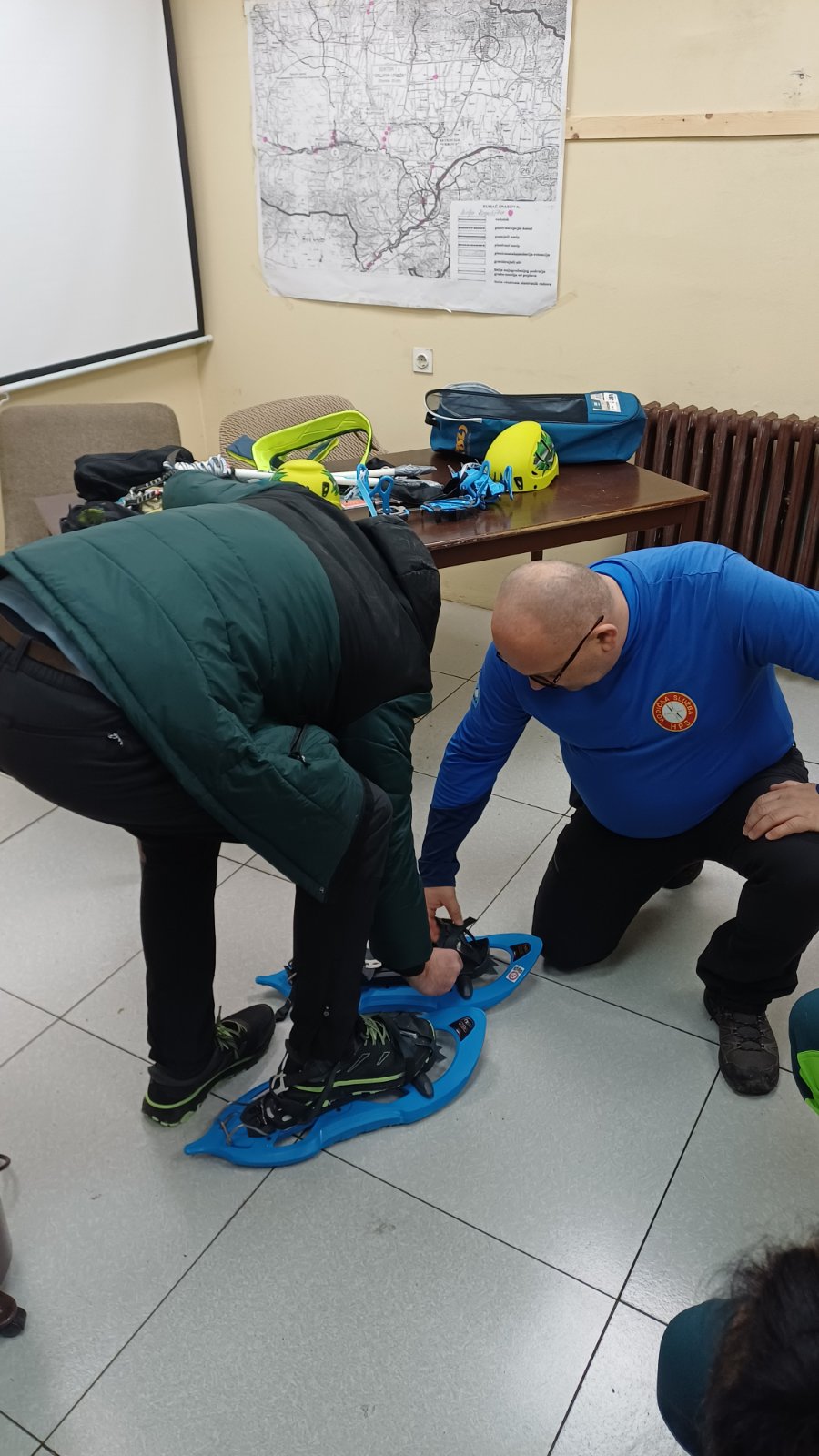 Polaznici planinarske škole mogli su obuti dereze i krplje te probati hodati s njima, uz detaljno objašnjenje u kojim uvjetima se koristi koja oprema. Objašnjeno im je da se krplje nose po dubokom snijegu u kombinaciji sa planinarskim štapovima, dok se dereze nose u kombinaciji s cepinom, pojasom i kacigom.