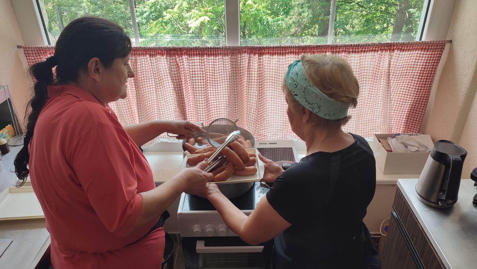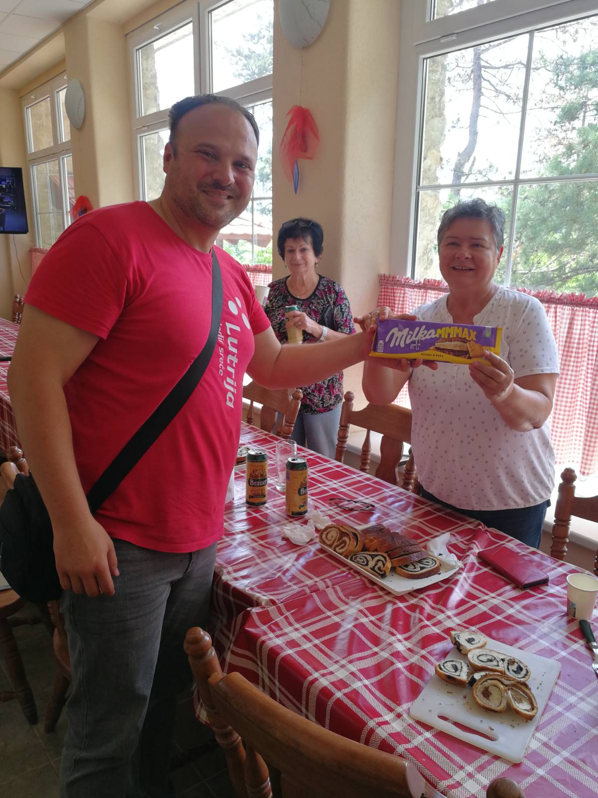 Nakon uspješno obavljenog posla, sudionici su se okupili na zajedničkom ručku. Poslužene su kranjske kobasice sa senfom, uz tradicionalne slavonske kolače – orahnjaču i makovnjaču. Hladna pića, pripremljena po posebnoj recepturi, osigurala su osvježenje nakon napornog rada.