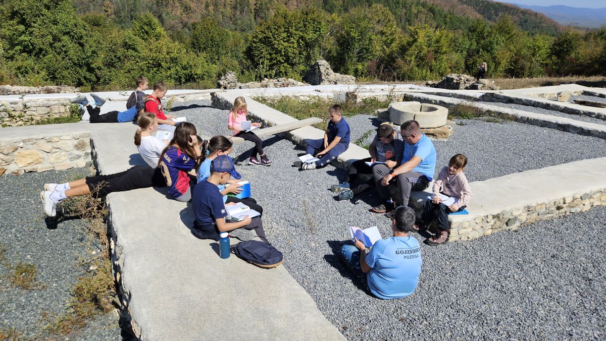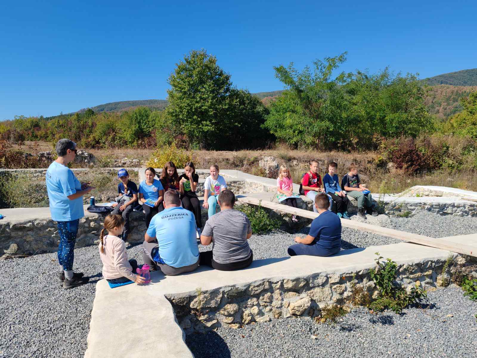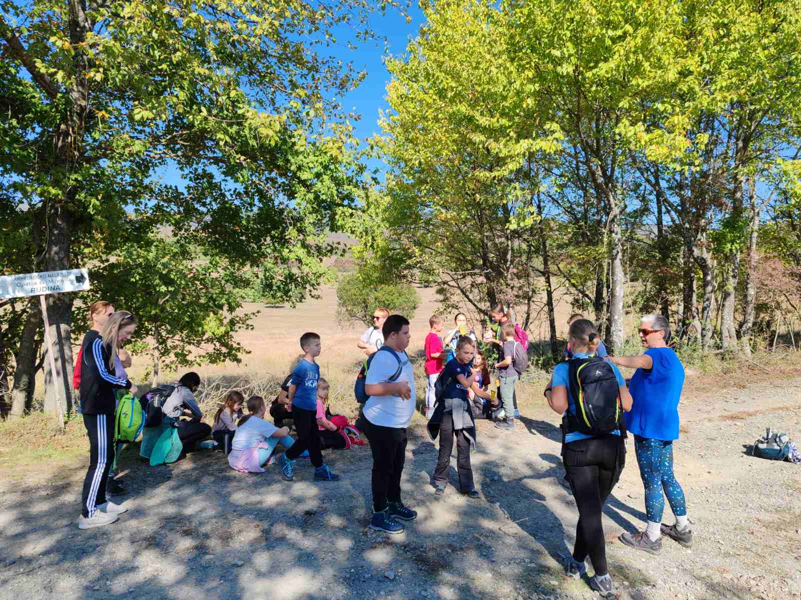 Dvanaest polaznika škole se, ovog puta iznimno, u društvu roditelja zaputilo prema padinama Psunja, gdje su ih dočekale ruševine benediktinske opatije Svetog Mihovila koja datira iz 12. stoljeća. No, osim nalaza iz tog razdoblja, na tom mjestu su nađeni nalazi iz rimskog doba. Mali planinari su se nadali vidjeti možda koju kost, fosile ili nešto slično i možemo reći da ih Rudine nisu razočarale. Osim toga, ostaci opatije se nalaze na predivnim padinama Psunja pa je i sama priroda svojim jesenskim šarenilom okupala male planinare dok su prolazili kroz nju.