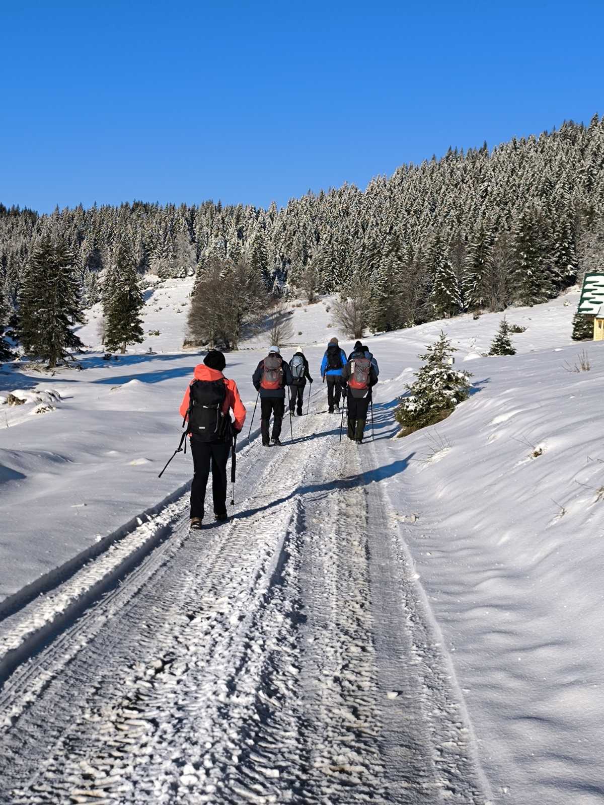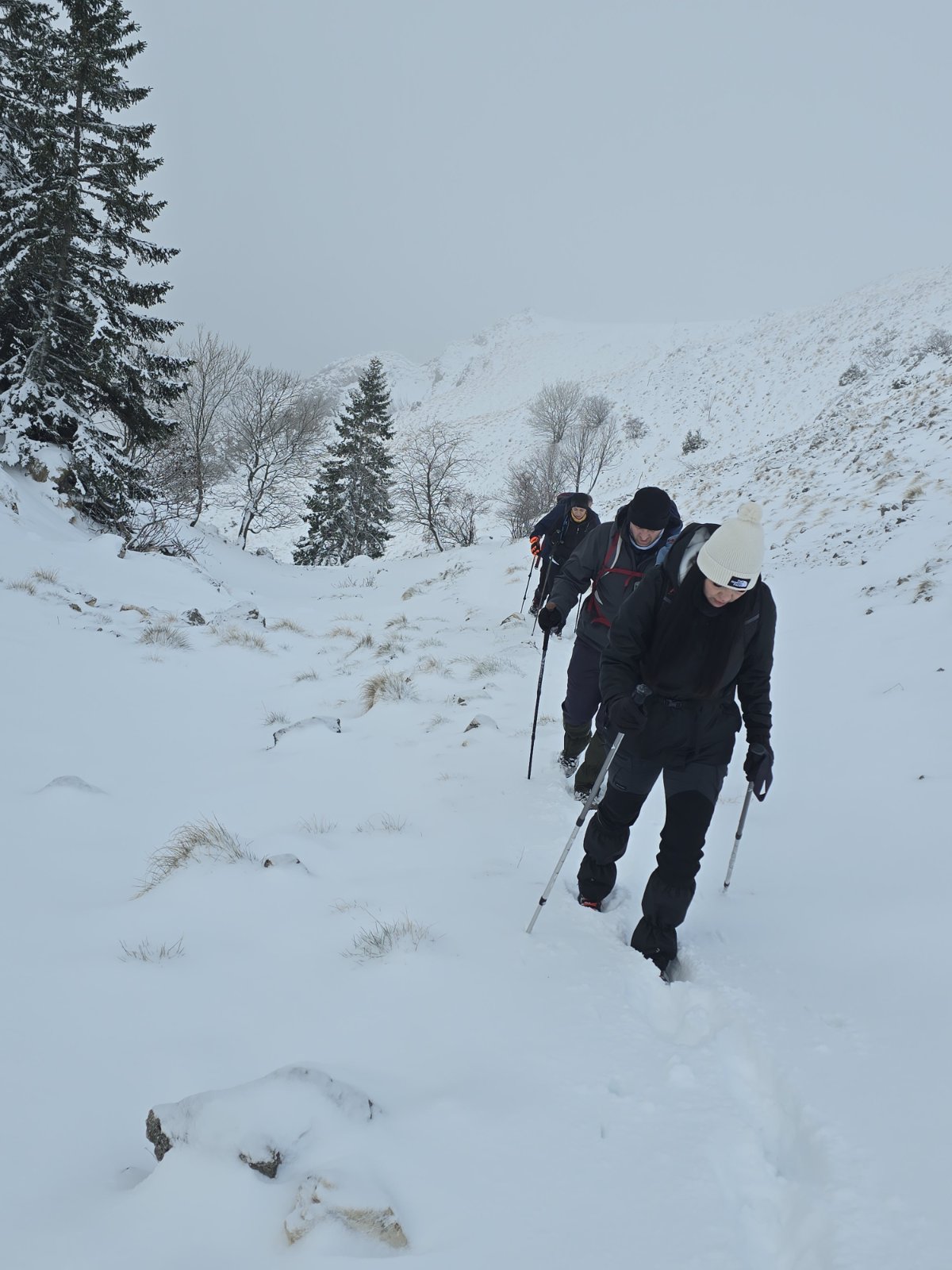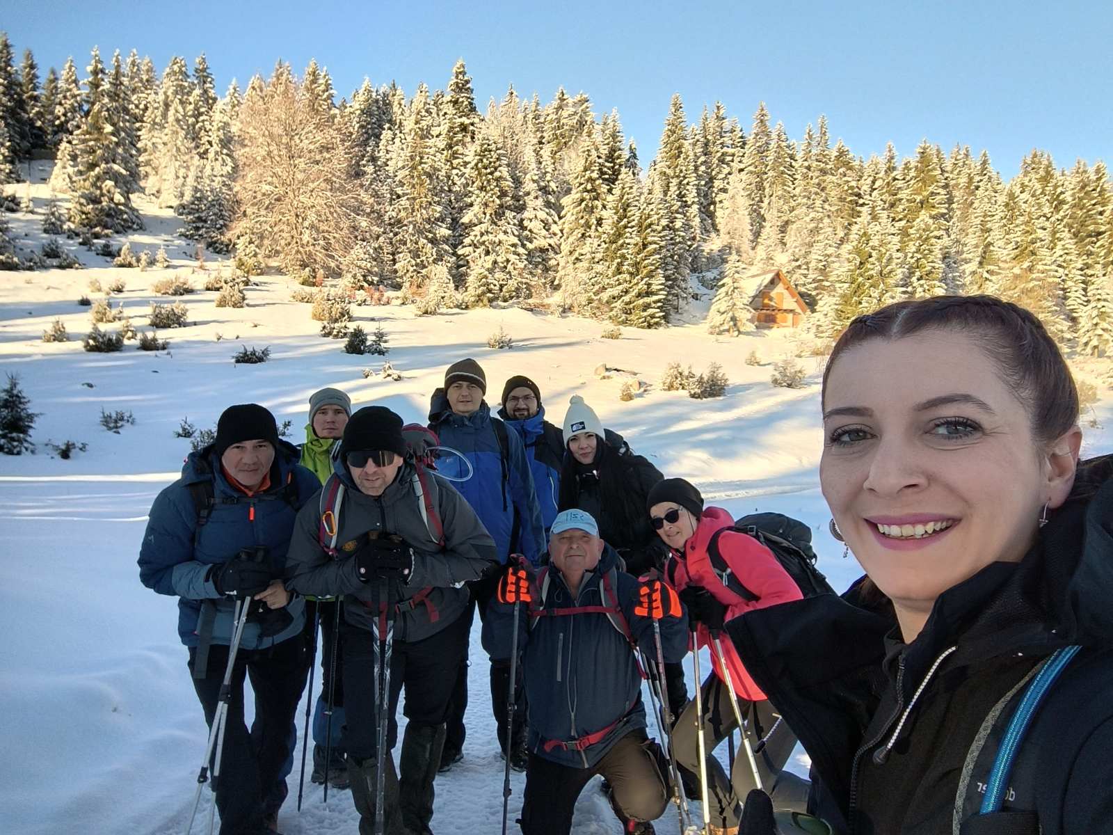 Subotnje jutro donijelo je hladnoću i gustu maglu, ali bez vjetra, što je mnoge od sudionika, posebno one koji prvi put planinare u zimskim uvjetima, ispunilo dozom neizvjesnosti, ali i znatiželje. Nakon otprilike dva sata hoda, po tridesetak centimetara snijega, skupina je stigla do doma „Jusuf Pečenković“ na prostoru Devečana na visini od 1763 m/nv, gdje su se kratko okrijepili.