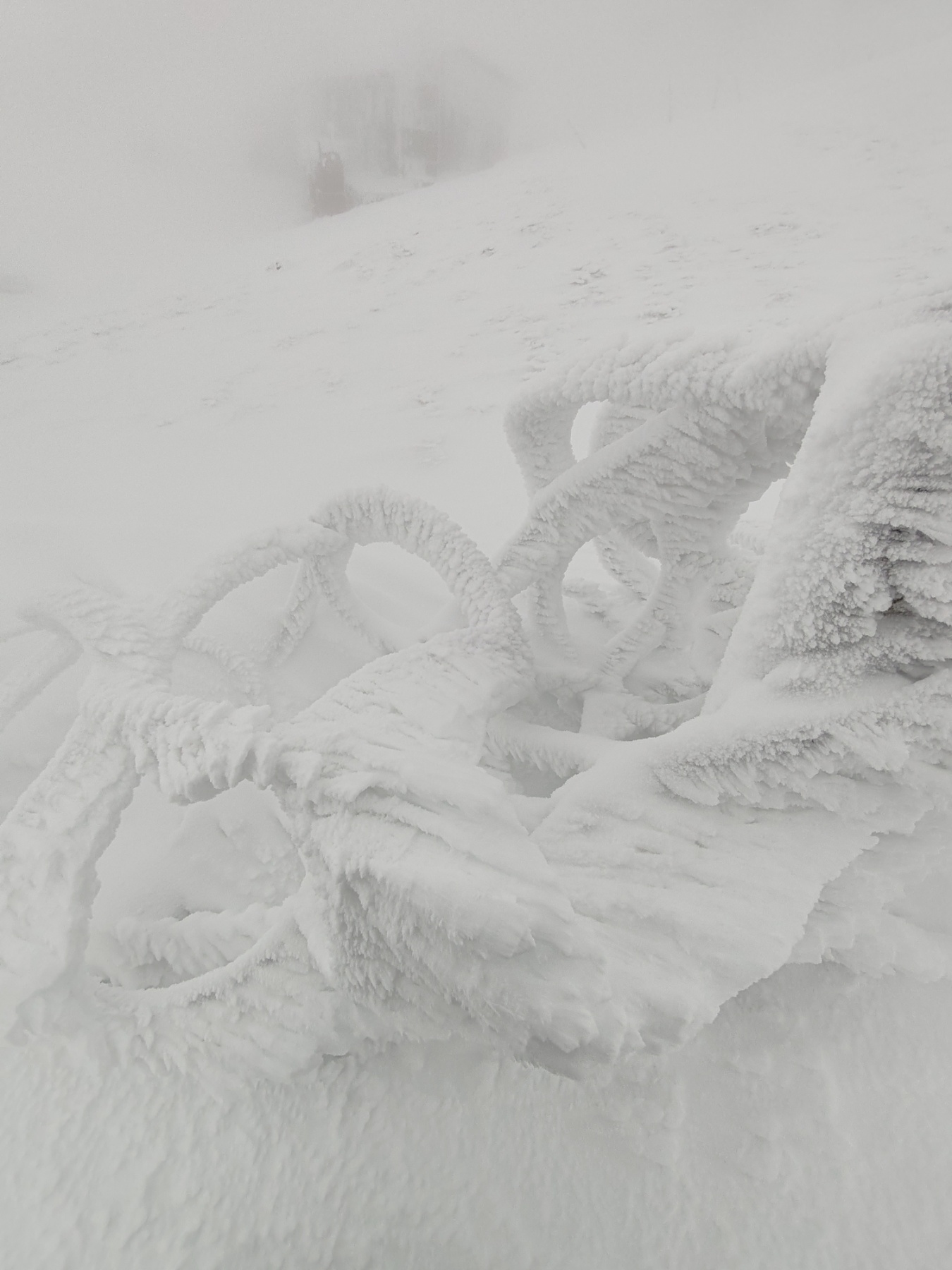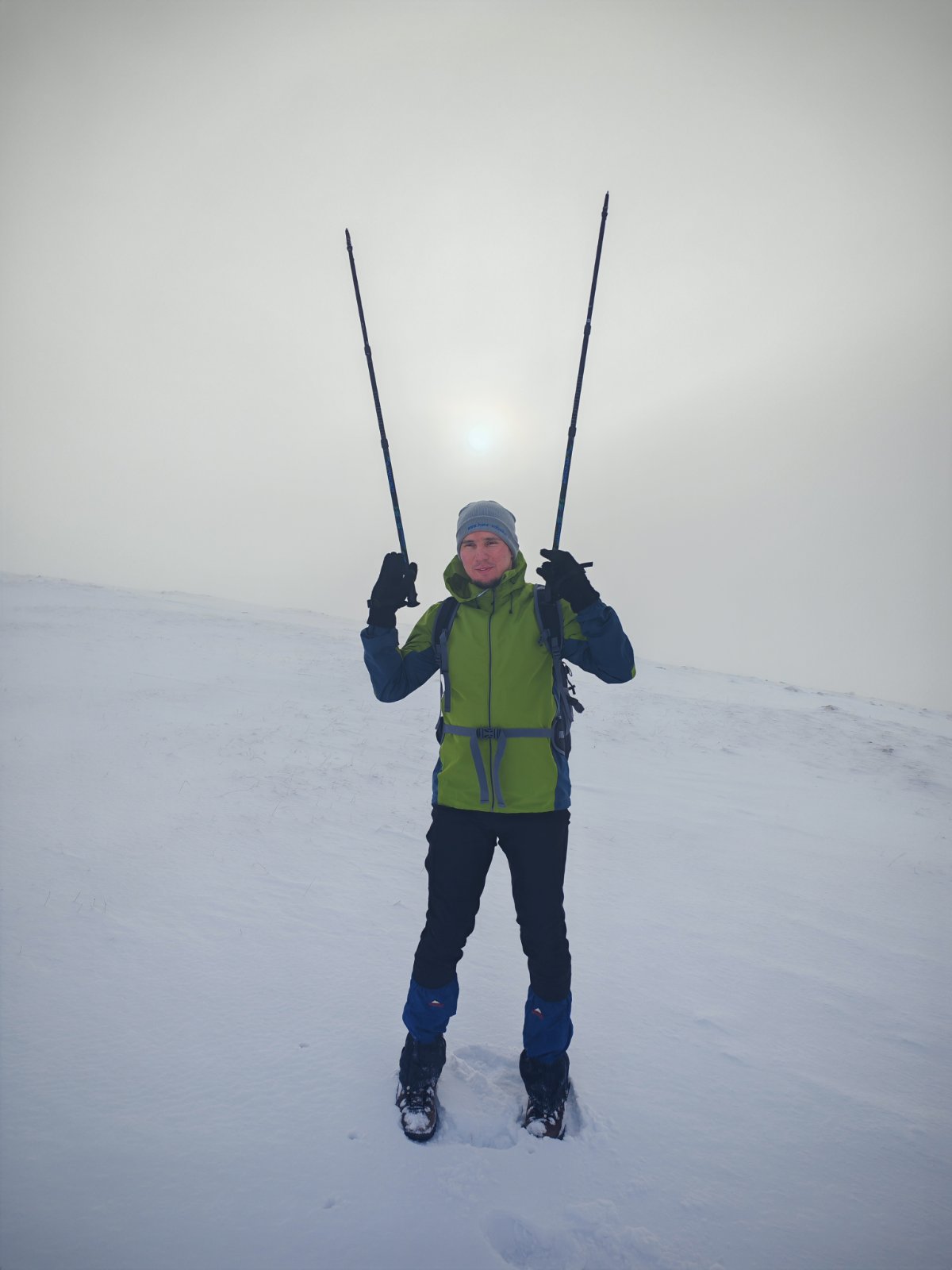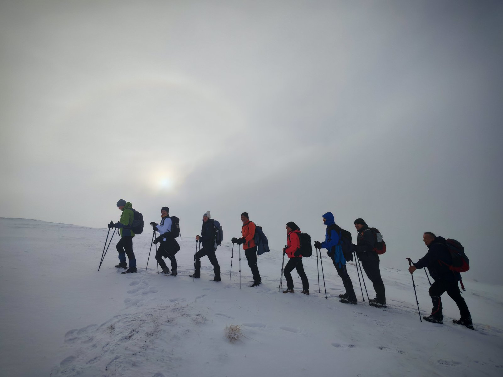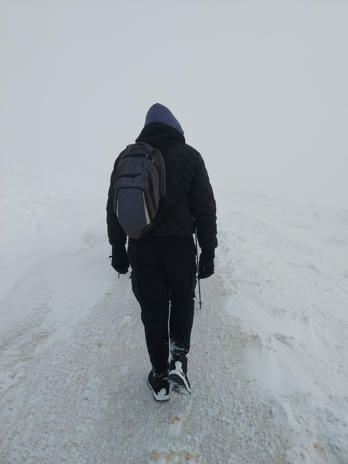 Na najizazovnijem dijelu uspona planinari su se susreli s potpunom bijelom izmaglicom bez vidljivog horizonta, u kojoj je bilo gotovo nemoguće procijeniti smjer. Uz pomoć mobilnih aplikacija i stalno praćenje stupova, koji su bili vidljivi tek na dvadesetak metara, grupa je polako, ali sigurno napredovala prema vrhu.