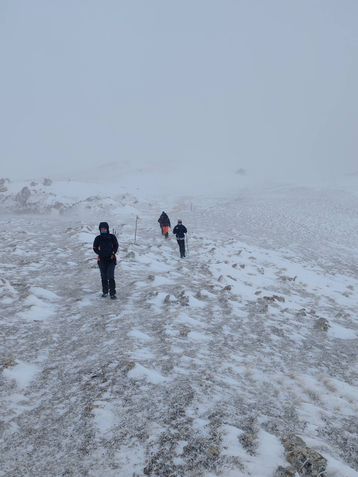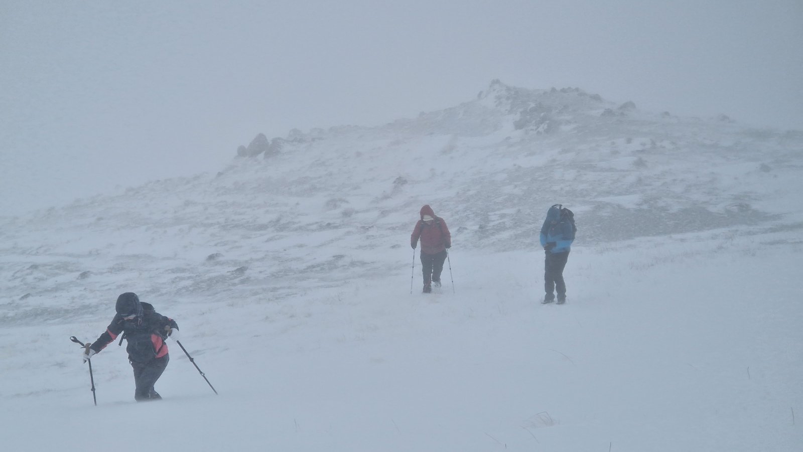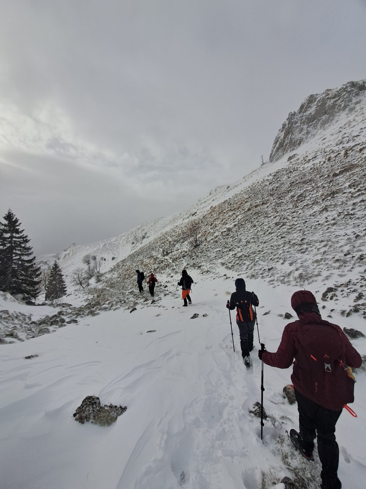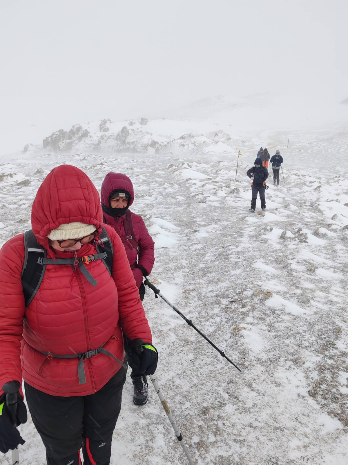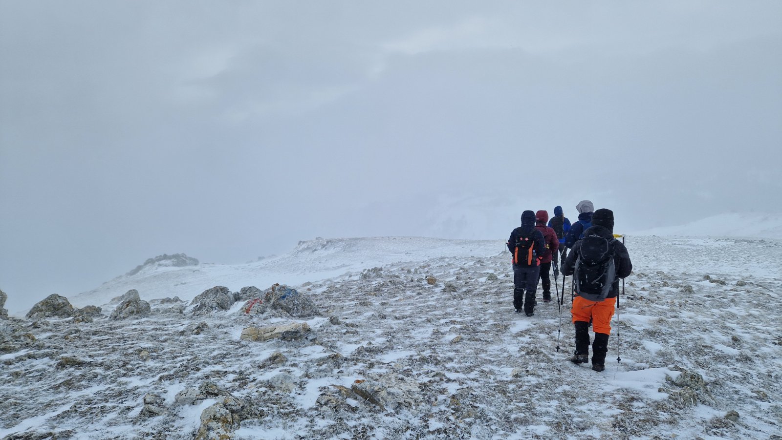Prvi dio uspona obilježila je borba s vjetrom. Planinari su pažljivo pričvrstili opremu kako bi spriječili da je naleti vjetra odnose. Vjetar je bio neumoljiv pratitelj, često odnoseći kape, kapuljače i rukavice u nepredviđenim smjerovima. No, unatoč napornim uvjetima, entuzijazam i osmijesi nisu izostali.