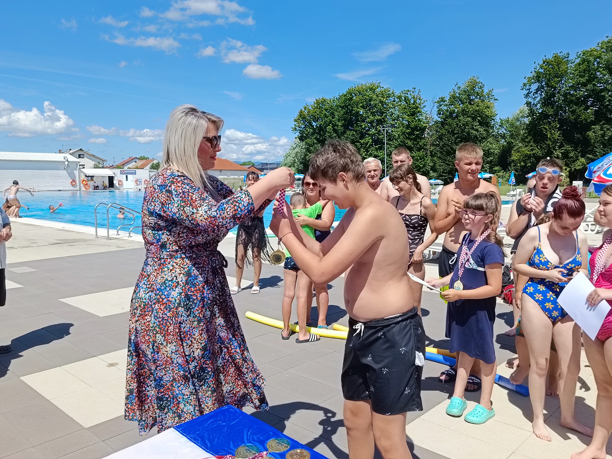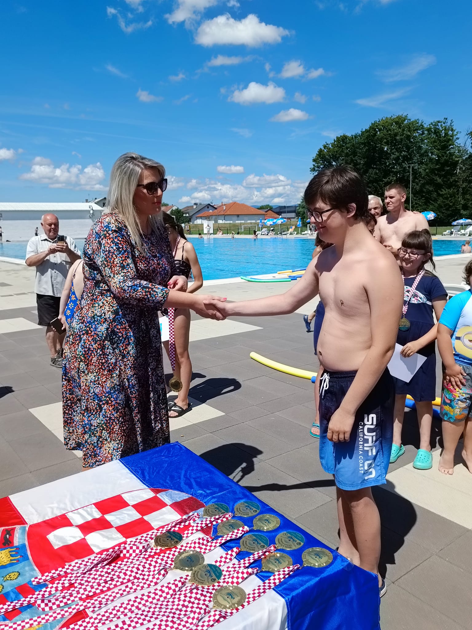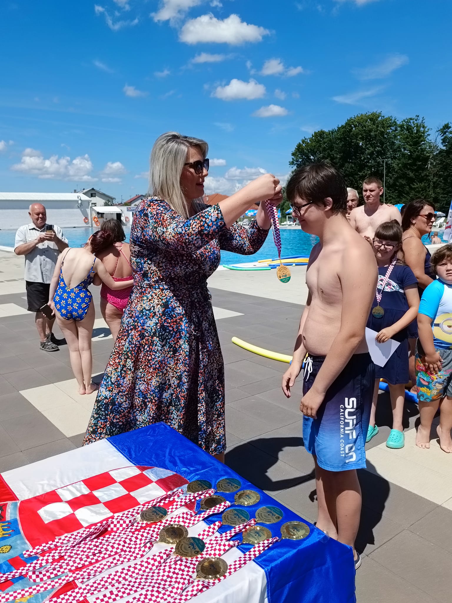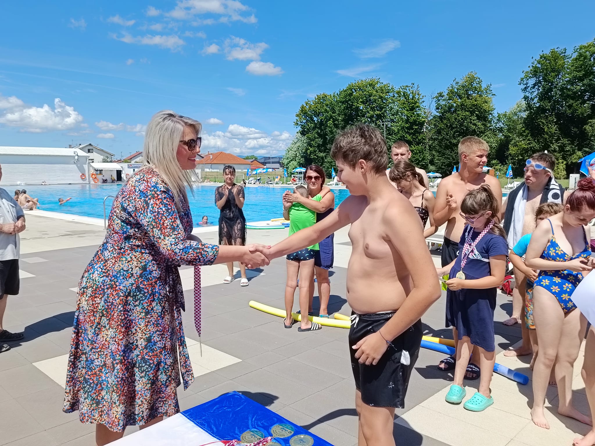 POŽEGA – Na Gradskim bazenima danas je završila Škola plivanja Požeškog športskog saveza za djecu s tjelesnim i intelektualnim teškoćama. Nakon posljednjeg sata obuke svi polaznici su nagrađeni medaljama i diplomama koje im je uručila pročelnica Upravnog odjela za društvene djelatnosti Grada Požege Maja Petrović.