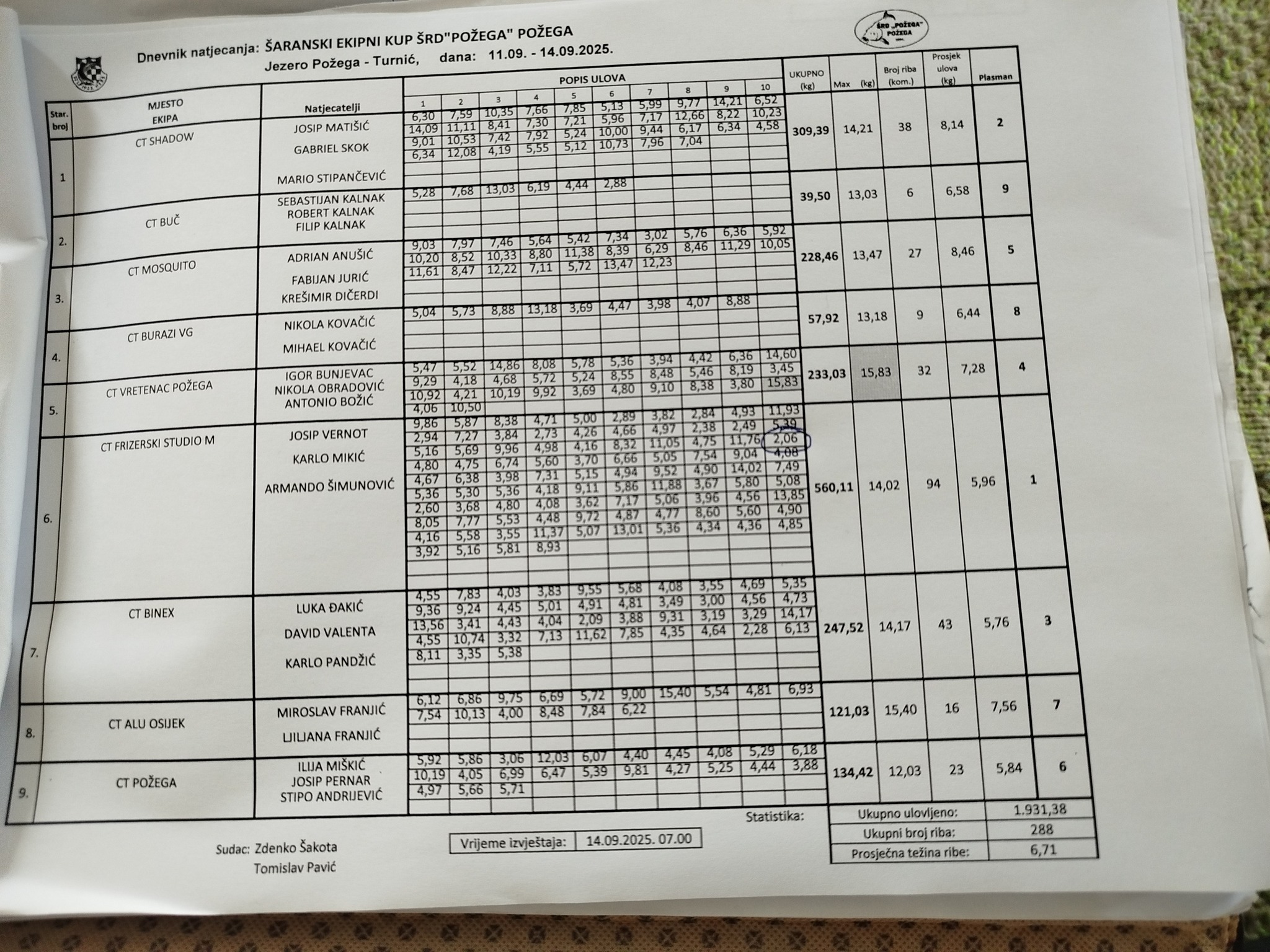- CT Frizerski studio M Požega (Josip Vernot, Karlo Mikić i Armando Šimunović) 560,11 kg,