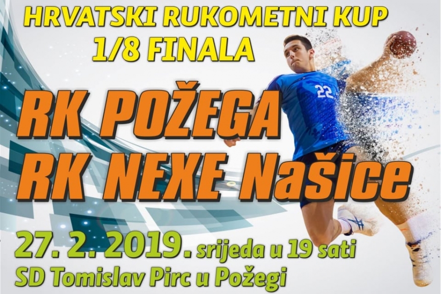 Rukometni klub Požega će u osmini finala Hrvatskog rukometnog kupa ugostiti RK Nexe (Našice)