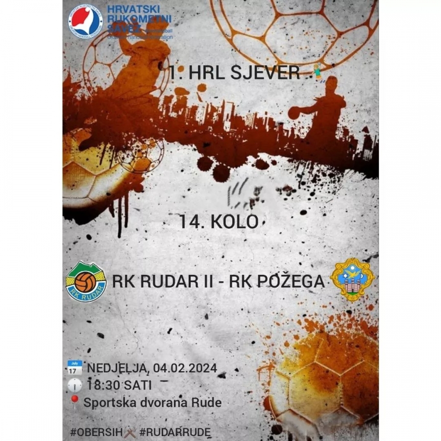 Rukometaši Požege odigrali neodlučeno, 28:28 na gostovanju kod Rudara II u 14. kolu 1. HRL - Sjever