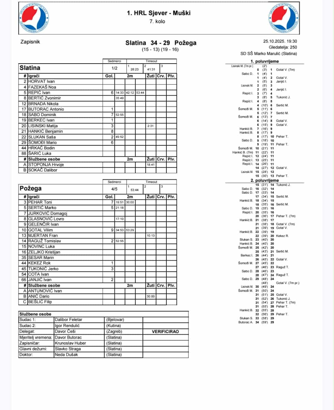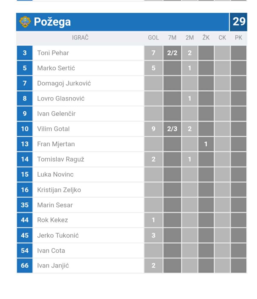 Kod Požege najraspoloženiji pojedinac bio je Vilim Gotal sa 9 pogodaka, a dobro su odigrali i Toni Pehar koji je dodao 7 golova te Marko Sertić sa 5 postignih pogodaka. U strijelce su se još upisali i Jerko Tukonić (3), Tomislav Raguž (2), Janjić (2) i Rok Kekez (1).